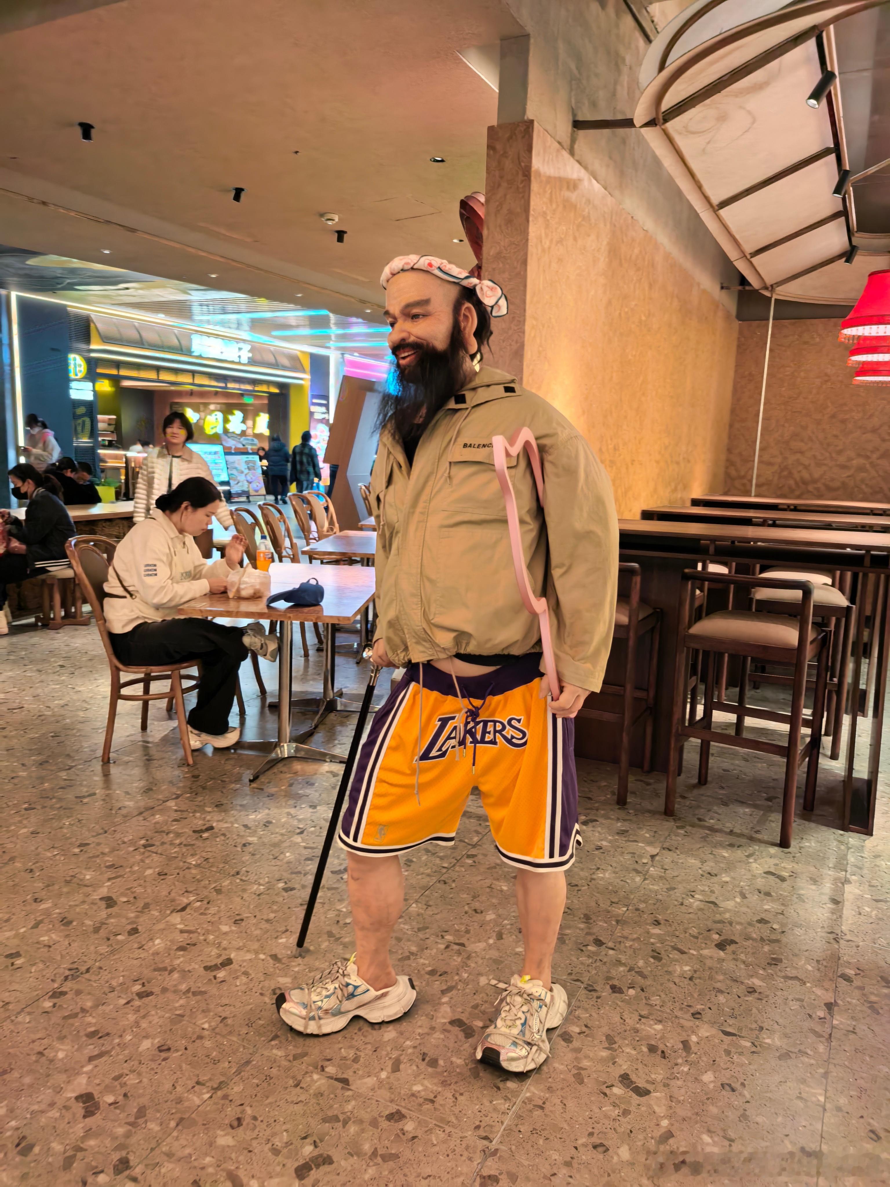 万达这不中不洋还有点恐怖谷效应的人形装饰,真的是谜一样居然还有个挂墙上的抽象东西…