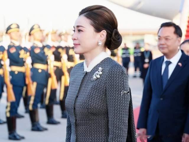 泰王后的这次访华,让我终于明白泰王当年废掉储妃,改立苏提达为后的考量了! 泰国国王50年首次访华,王后苏提达却成了全场焦点!全因每一次的出场造型都美翻了,刚抵达北京机场时的首套灰色斗篷千鸟格大衣,温婉霸气,惊艳四座;天安门广场上,一袭深色系斜襟缎面修身大衣配低盘发,高贵典雅,无可挑剔......访华最后一天逛故宫,更是放出大招,斗篷大衣配10公分细高跟,低调华贵气场全开,更绝的是卷翘刘海配上小礼帽,竟比女明星还美上几分! 更重要的是,有一半中国血统的她,不仅会讲中文懂礼数,还优雅得体,端庄大气,谦虚亲和处处显分寸,尤其是在清华大学,全程长达8分48秒的中文演讲中,引用古诗词更是信手拈来,恰到好处......举手投足间,无不尽显一国王后母仪天下的风范,实在太为泰王长脸了!