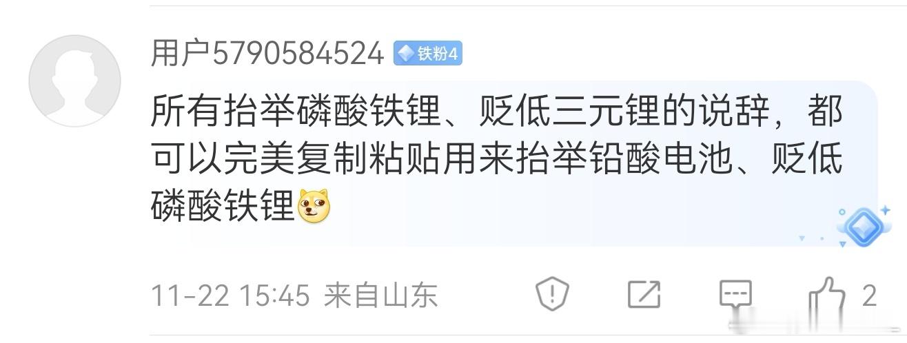 我早就说了啊。如果说磷酸铁锂比三元锂更好这个假设成立。那么铅酸电池就比磷酸铁锂更好。因为铅酸电池的化学特性更安全,因为能量密度不重要。但是,这合理吗?