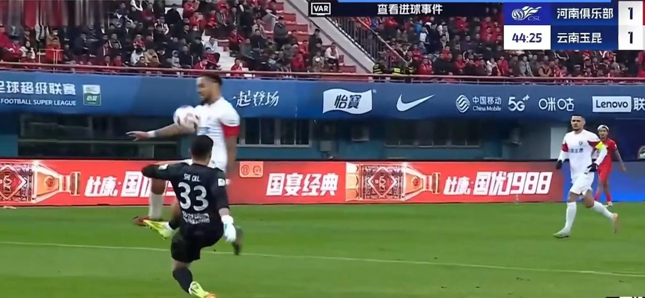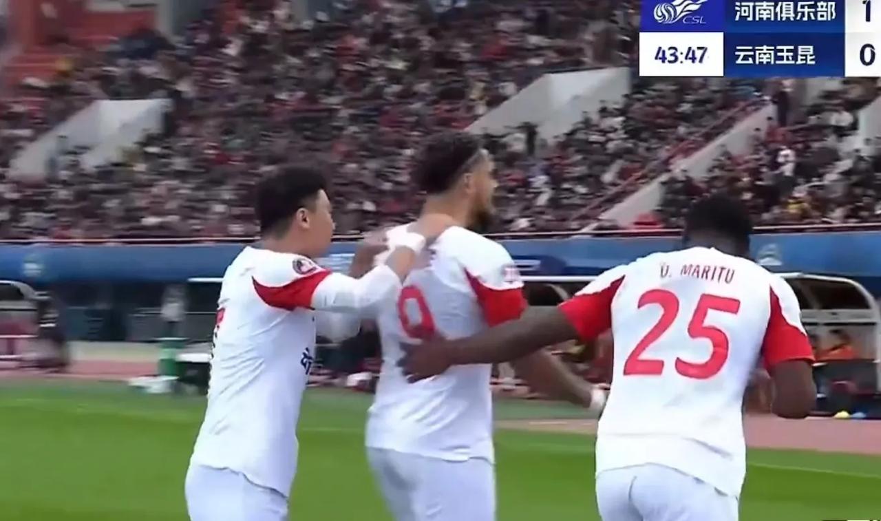 河南队守门员45分钟送大礼,河南队后卫回传守门员,守门员停球停大了,恩里克抢断守门员打空门扳平比分,上半场结束,河南队1比1云南玉昆,双方握手言和。 河南队今天开场攻势很猛,才15分钟就由队长王上源助攻阿奇姆彭首开纪录,河南队1比0领先,想不到上半场最后一分钟守门员失误送大礼,云南玉昆1比1扳平比分。希望双方下半场为球迷奉献精彩的进球大战,双方一起加油!