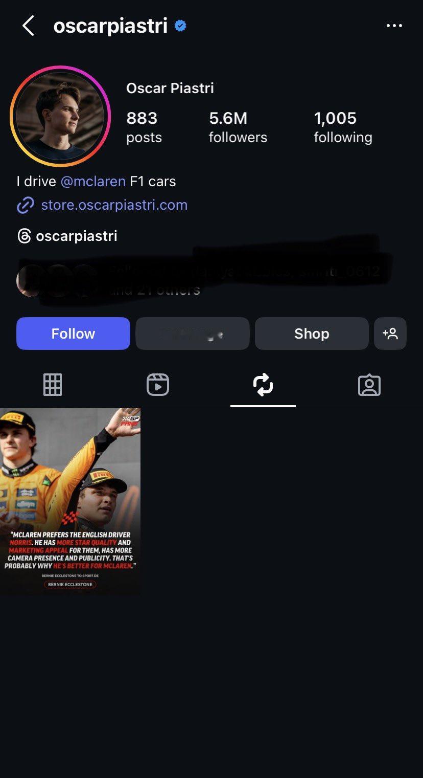 皮亚斯特里就自己转发伯尼关于迈凯伦车队更希望诺里斯夺得F1世界冠军的评论一事作出回应。那条Ins引用了伯尼的评论(图1):“迈凯轮更偏向英国车手诺里斯。他对车队来说有更多明星气质和市场吸引力,在镜头前表现更好,能够带来更多曝光和宣传。这大概就是为什么他对迈凯轮更有利的原因。”皮亚斯特里在拉斯维加斯大奖赛FP3和排位赛开始前被发现分享了这条Ins,但很快又将其删除。在被问及此事件以及伯尼的评论时,皮亚斯特里表示他并不清楚事情的具体经过,暗示可能是无意操作。“我不知道,”他在拉斯维加斯排位赛后接受RN365采访时说,“我今天早上醒来才看到这件事,所以我不知道,也许是我不小心操作的。显然,这并非故意。但我确实不知道发生了什么,所以我也不知道该怎么说。”