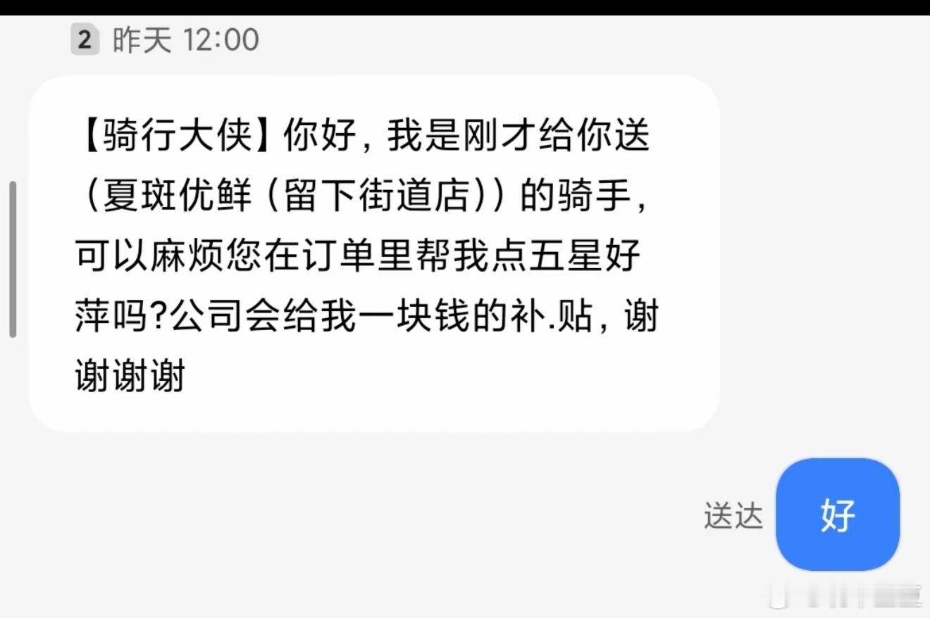 原来五星好评可以值一块钱!!!有没有和我一样,从没给任何一个外卖员差评的举手🙋🏻♀️