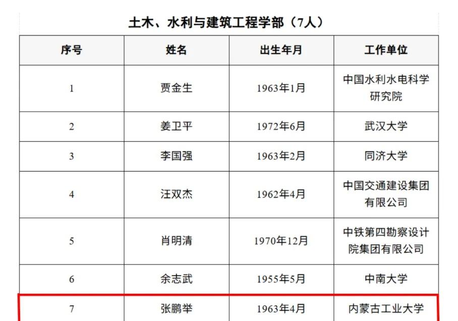 【锡盟人张鹏举当选中国工程院院士】 中国科学院、中国工程院 11月21日公布20