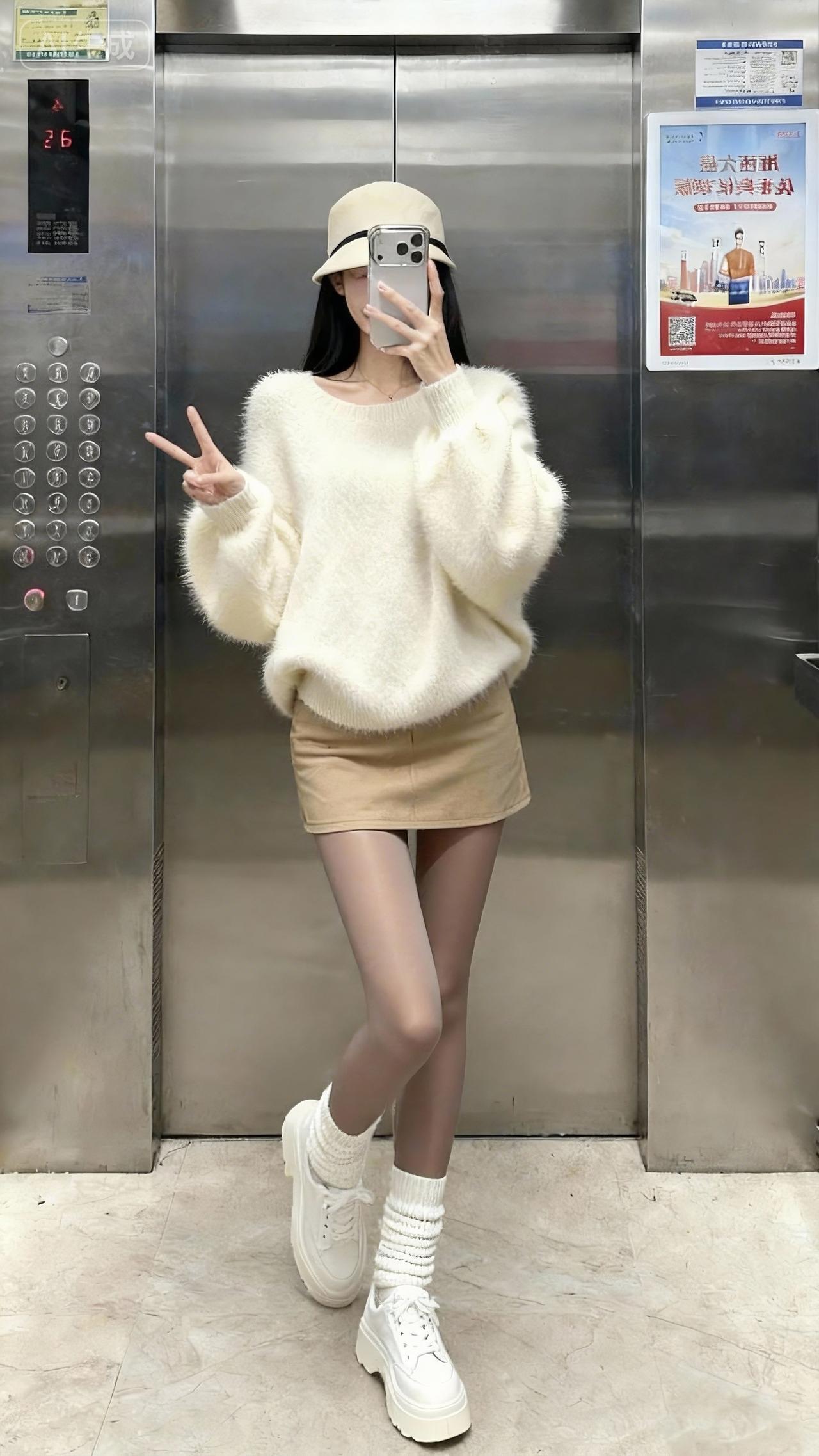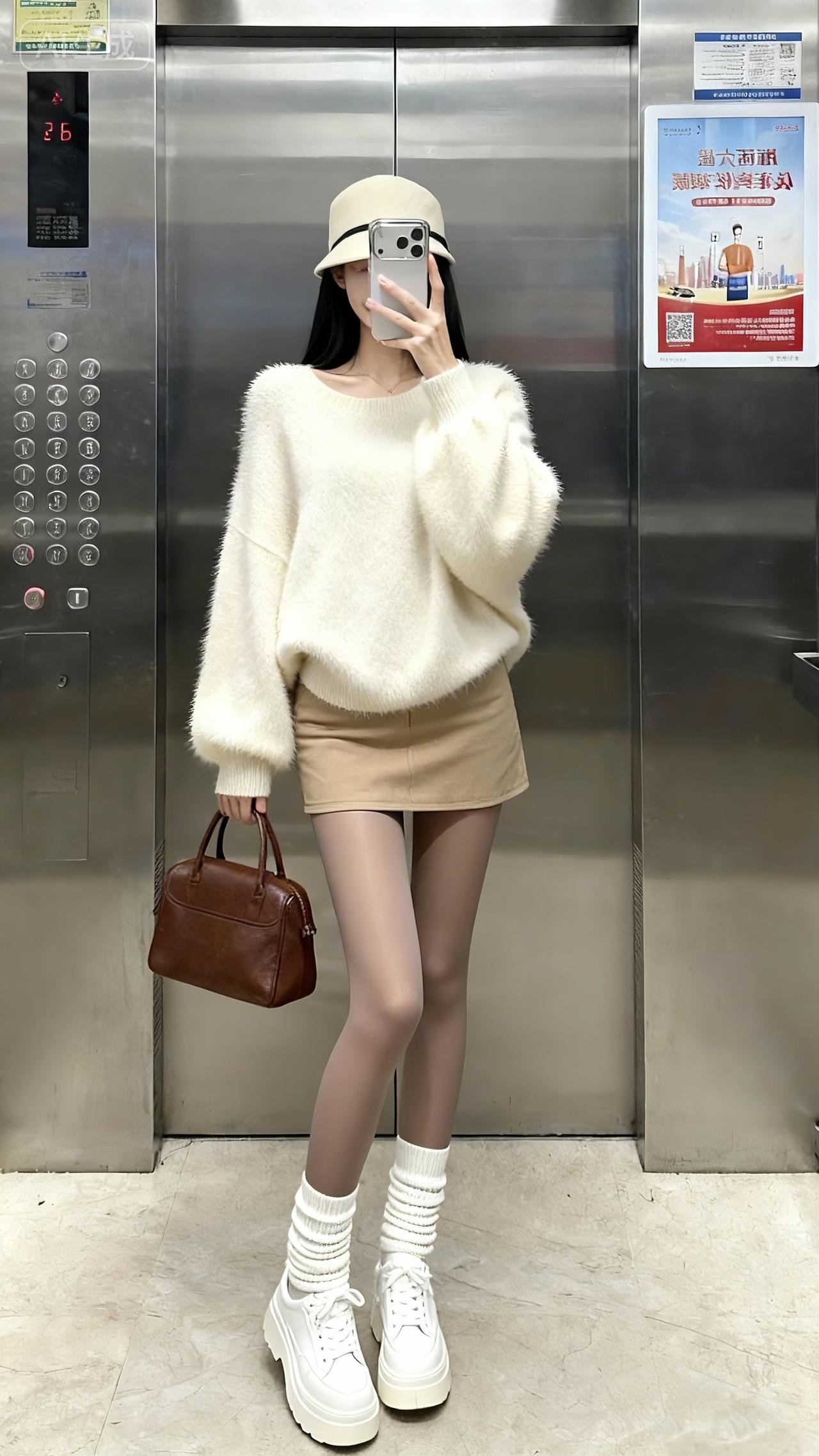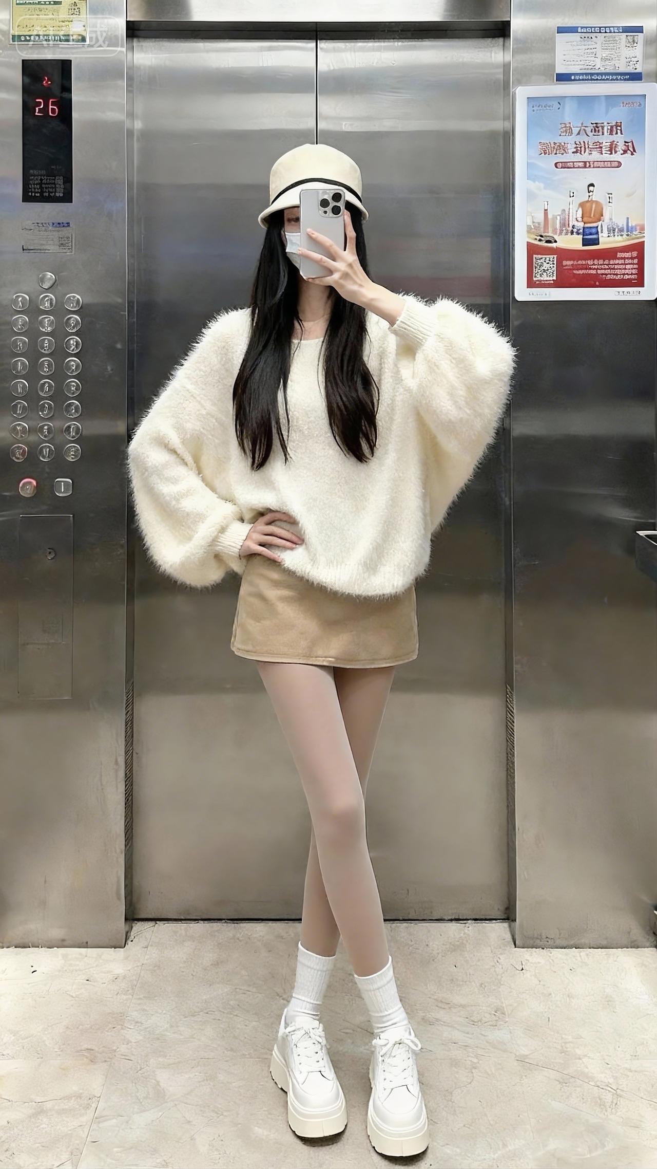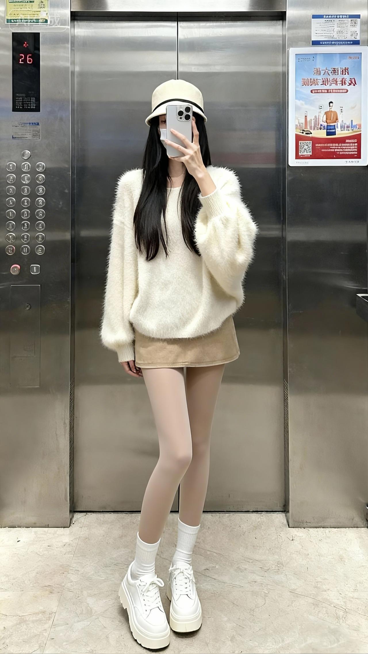 ootd穿搭电梯拍照 日常分享 小个子穿搭 围巾控