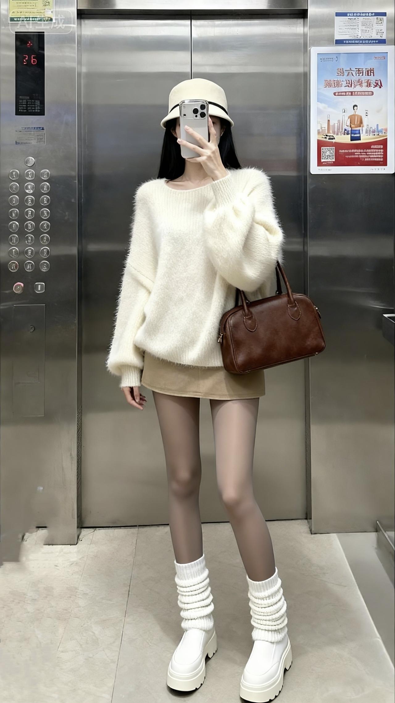 高领毛衣+百褶裙+堆堆袜,把温柔和甜酷焊在身上!原来我是冬日穿搭小天才 白色系穿