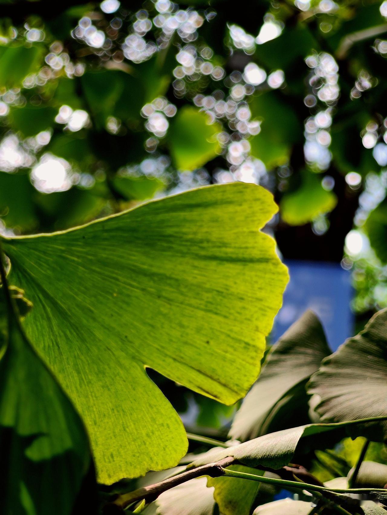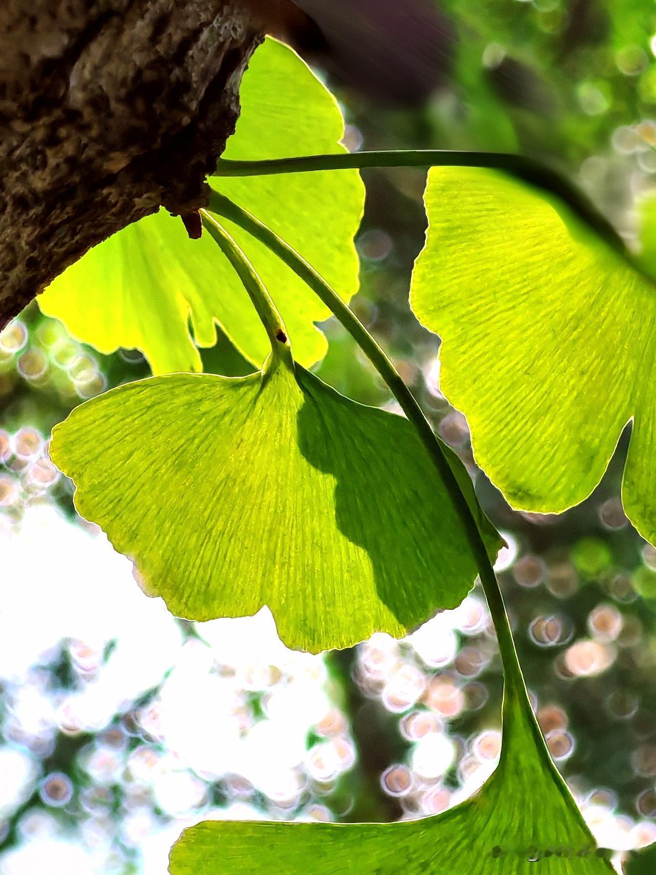 周末,重庆很难得阳光明媚,我到社区公园晒太阳,公园里一排银杏树,阳光透过枝叶的缝