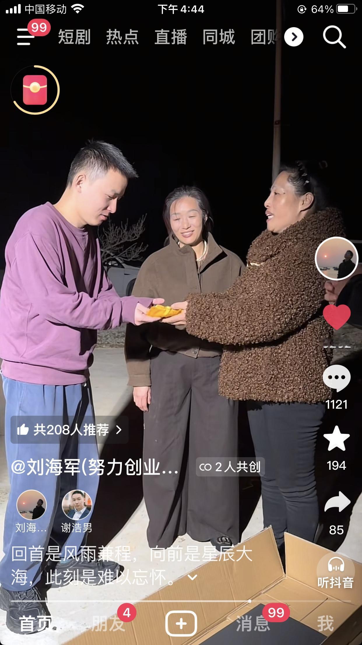 谢浩男咋也没想到认亲回来的第一个生日自己竟然成了千万富翁,记得在认亲时的采访,谢浩男说之所以考研是因为本科毕业找工作一个月才3000块,所以才考研。现在不仅自己致富,还带动战友海军开专场直播带货。 有人说谢浩男 太重情义了。有情有义,在这一刻完美体现了,虽然用海军号来播,但是,妈妈,大妹,浩南,三个号来助威,这是妥妥的流量助力兄弟啊[666] 带货要有个噱头,那就是卖惨,海军妈妈欠100多万的债也成了人们同情的点,以前不是说海军妈14年就实缴千万公司吗?海军妈养的猪、鸭、羊,鸵鸟,像是欠债的家吗?不过这些大妈们磨刀霍霍要助力海军成富翁了。不管怎样还祝海军大卖吧。