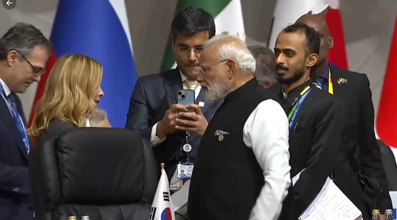 意大利女总理在南非G20峰会上遇到了印度总理,笑得合不拢嘴!11月22日南非G20峰会正式开幕,女总理梅洛尼在峰会现场见到了印度总理,两人在一起谈笑风生,不知道说得是什么话题,让梅洛尼开心的不得了。 摄影师也很会抓拍,梅洛尼原本就性格开朗,虽说和莫迪在私下没有什么交情,只是因为工作才会相遇,没想到两人见面后还挺有话题可聊。 值得一提的是梅洛尼和莫迪在一起聊天,旁边还有一名男子双手举着手机拍他们,可见聊天内容与工作无关,应该是很有趣的话题。