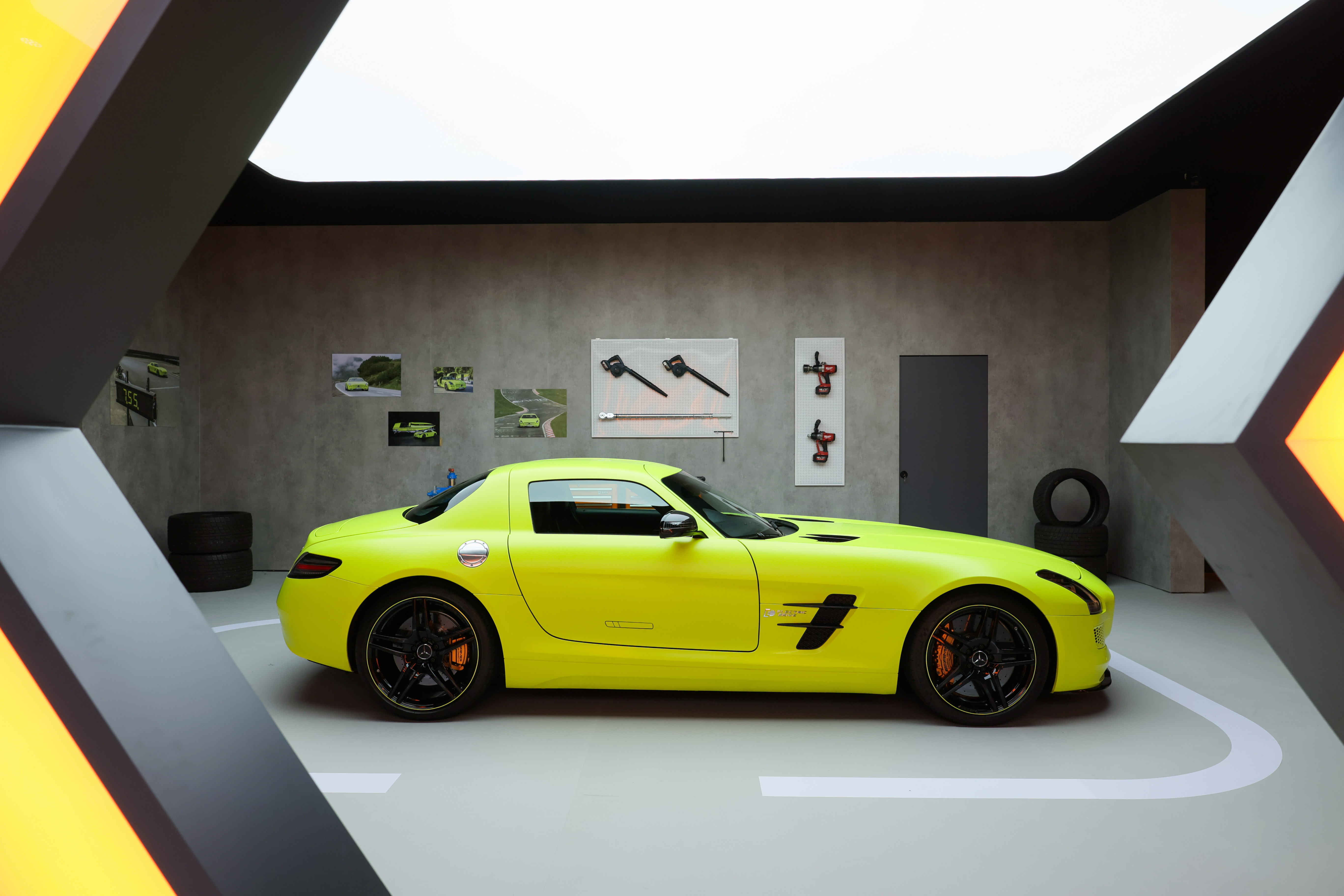 2013 SLS AMG Coupe Electric Drive奔驰首款电动超级跑车,四轮独立电机,两个变速箱。输出740bhp,1000nm。电池自重548公斤,车重2.1吨,纽北7分56秒234。