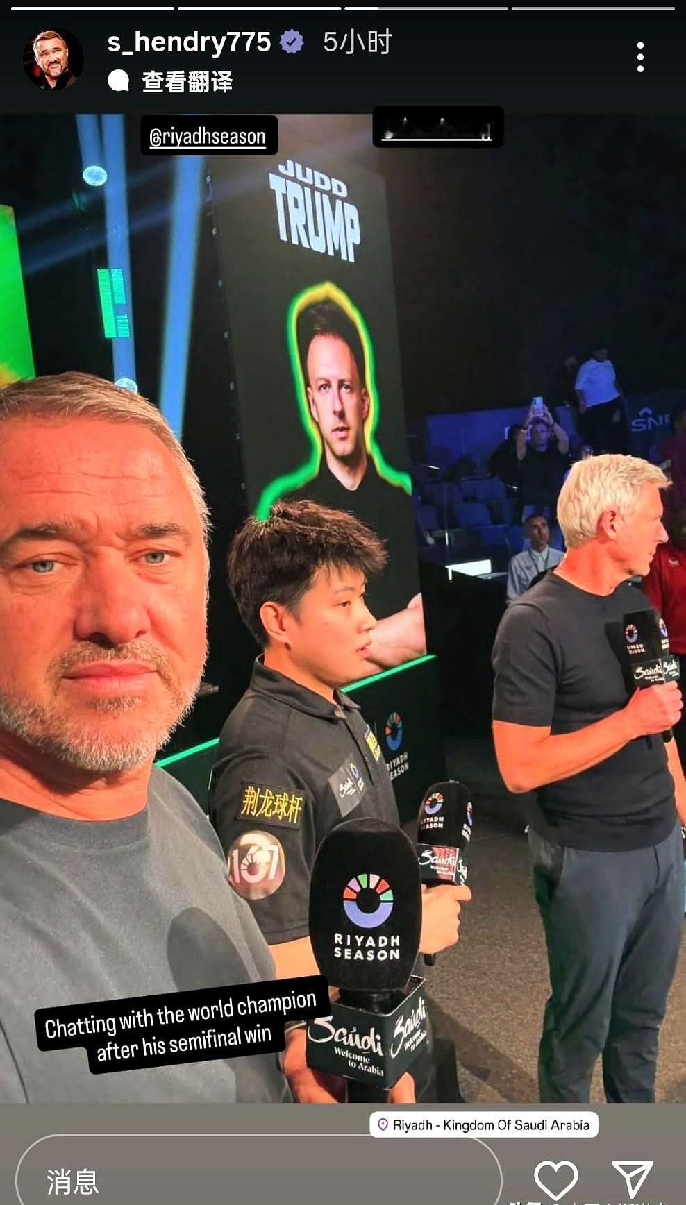 “台球皇帝”亨得利在利雅得更新动态。 他在现场全程关注着赵心童,半决赛后找他聊天,决赛一结束就立马发文,为他记下这个冠军时刻。 老球王这是用自己的眼睛看着他,用自己的动态替他记下来这一笔。 他特意强调这是赵心童成为世界冠军后的“第一个”冠军,就是在告诉所有人,那个曾经的天才又回来了。