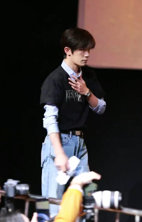 易烊千玺上海路演状态,易烊千玺黑蓝牛仔look,满分轻松chill感的千玺上线,第二场路演来啦,期待住你多分享啦~