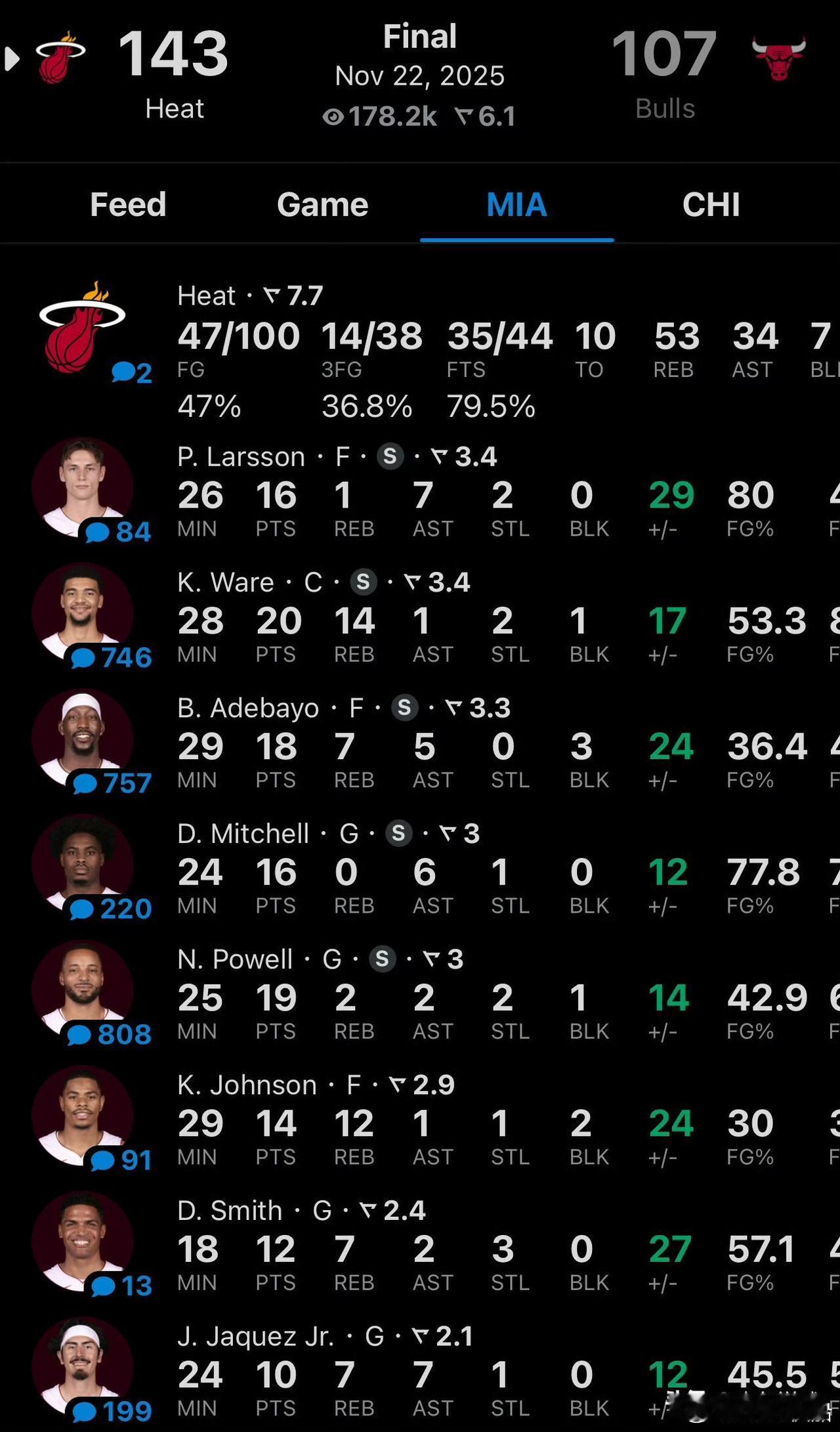 热火队的阵容真对不起斯波尔斯特拉! 今天,热火队以143-107大胜公牛队,全队多达8人得分上双,最高得分是维尔的20分,将团队篮球发挥到了极致。 斯波尔斯特拉是NBA历史上最出色的主教练之一,无论多么平民的阵容,他总能用自己独特的体系带领球队赢球,球员在这套体系下都能发挥各自的作用。但再强的体系也需要巨星球员兜底才能夺冠,而热火队已经很久没有巨星加盟了。可以这样说,热火队管理层真的在浪费斯波尔斯特拉的巅峰,赶紧交易或者招募来巨星吧!