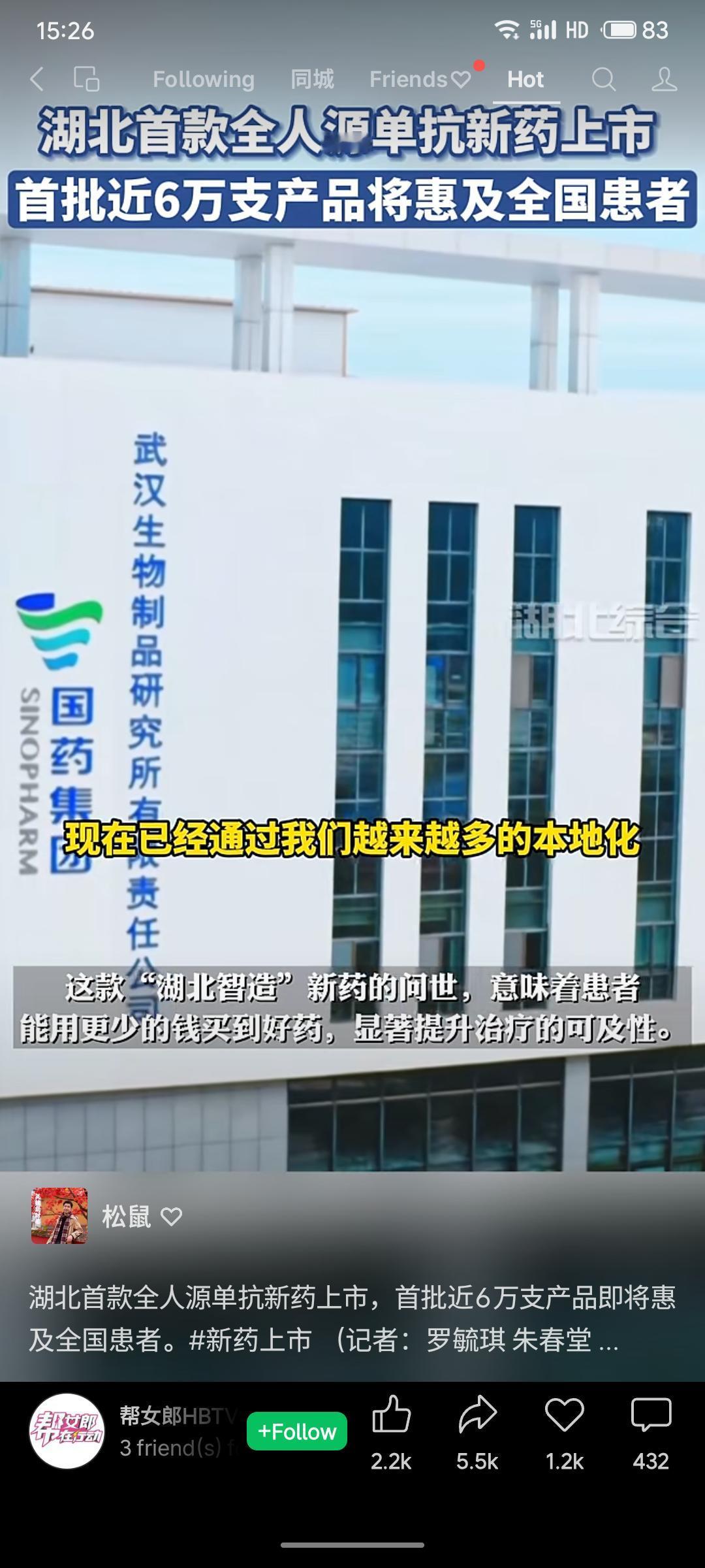 湖北省首款全人源单抗新药阿达木单抗已上市。该药是治疗类风湿关节炎等自身免疫疾病的“王牌”药物,首批近6万支产品将惠及全国患者,有望让患者以更低费用获得有效治疗。