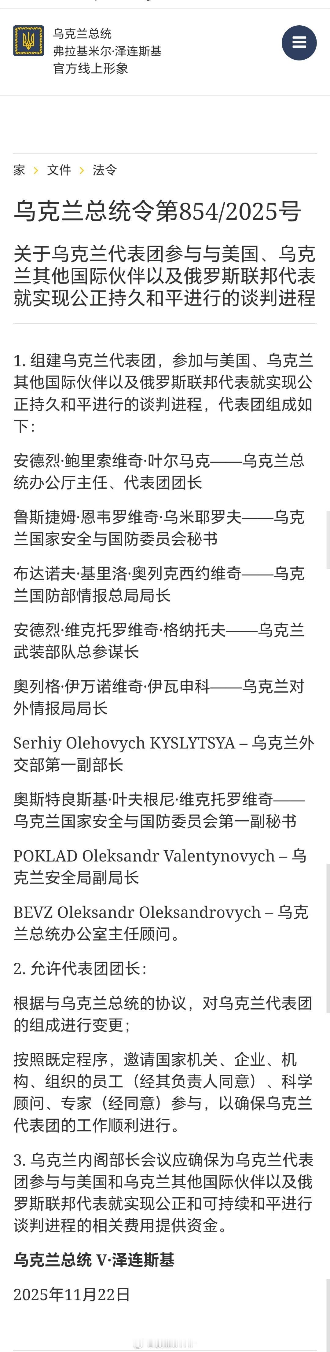 泽连斯基宣布:在后,今天,泽连斯基签署总统令成立乌克兰谈判代表团,将负责与美国、