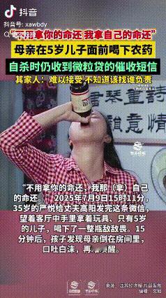 高利贷杀人的事件又上演!母亲在5岁儿子面前喝下农药,自杀时仍然收到微粒贷短信催收。 这不是电影情节,是发生在现实里的悲剧。35岁的严悦在给丈夫发完“不用拿你的命还,我拿自己的命还”的微信后,当着5岁儿子的面,喝下了一整瓶敌敌畏。15分钟后,孩子发现母亲倒在房间里,口吐白沫,再也没能醒来。 而就在她喝药抢救的过程中,手机里微粒贷等网贷机构的催收短信还在不断发来。当天,她收到的催收短信超过30条,光微粒贷一家就有19条。这些冰冷的短信,像一把把锤子,敲碎了她最后的心理防线。 谁能想到,这个为了孩子教育和家庭开销而借贷的母亲,会走到这一步。她的丈夫因为行业不景气,一年收入只有3万多,还被熟人骗走10万,变卖所有财产后成了信用黑户。严悦为了撑住这个家,从银行贷款20万,办了多张信用卡,又在微粒贷借了7万多,债务滚到了46万,每月光最低还款就8000多。 她的消费记录里,全是孩子的教育支出和家庭日用品。可就是这样一个为家庭奔波的母亲,最终被网贷催收逼上了绝路。她的丈夫事后去派出所领取报警记录,面对妻子的突然离世,一家人都不知道该找谁负责。 这样的悲剧不是个例,高利贷和暴力催收就像一张无形的网,困住了太多普通人。希望这样的事情再也不要发生,也希望那些网贷机构能有点人性,别再用冰冷的催收短信,把人往绝路上逼。 各位读者你们怎么看?欢迎在评论区讨论。 来源:西安晚报 2025-11-21发布