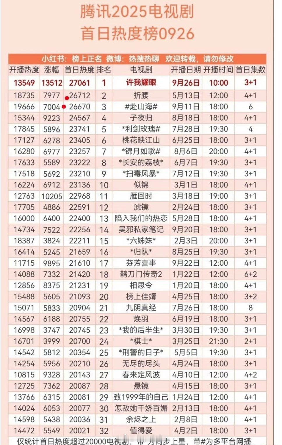 迪丽热巴、陈星旭的枭起青壤🐧开局6广无🥕,招商挺漂亮的~枭起青壤热度已破25000+,和预测差不多确实高开了,🐧也给了首页弹窗,看能不能破26000,第一天是稳的,剩下就看剧情留存率了。你们看了吗?怎么样? ,,,
