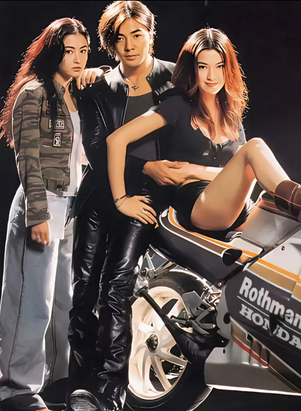 流行是一场轮回。那个年代张柏芝穿着宽腿裤,正是现在流行的;郑伊健的皮裤,汪峰一直穿着;林熙蕾短裤,至今还一直在流行。20多年过去了,他们三个人穿的,一点也不土,现在看来依然是潮流。让人羡慕的是,三个人如瀑布般的长发。
