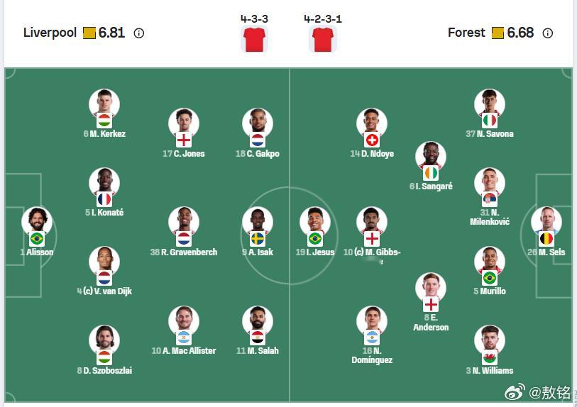 斯洛特这是多喜欢索博斯洛伊啊!这是索博本赛季的第17场比赛,前面16场都是首发打满全场,4场欧冠,11场联赛,1场社区盾杯,就是2场联赛杯没踢。有趣的是,这是索博本赛季第5次在各项赛事中出任右边后卫。布拉德利和弗林蓬都伤了,斯洛特非常信任索博,所以,即使戈麦斯可以客串,他也不用。但是,索博如果今天助攻很大,回不来的话,这一侧森林可能会安排多明戈兹和威廉姆斯轮番冲击。我隐隐有一种感觉,这场球森林的中锋伊戈尔-热苏斯可能要爆发,会让科纳特、范戴克两个中卫非常难堪。