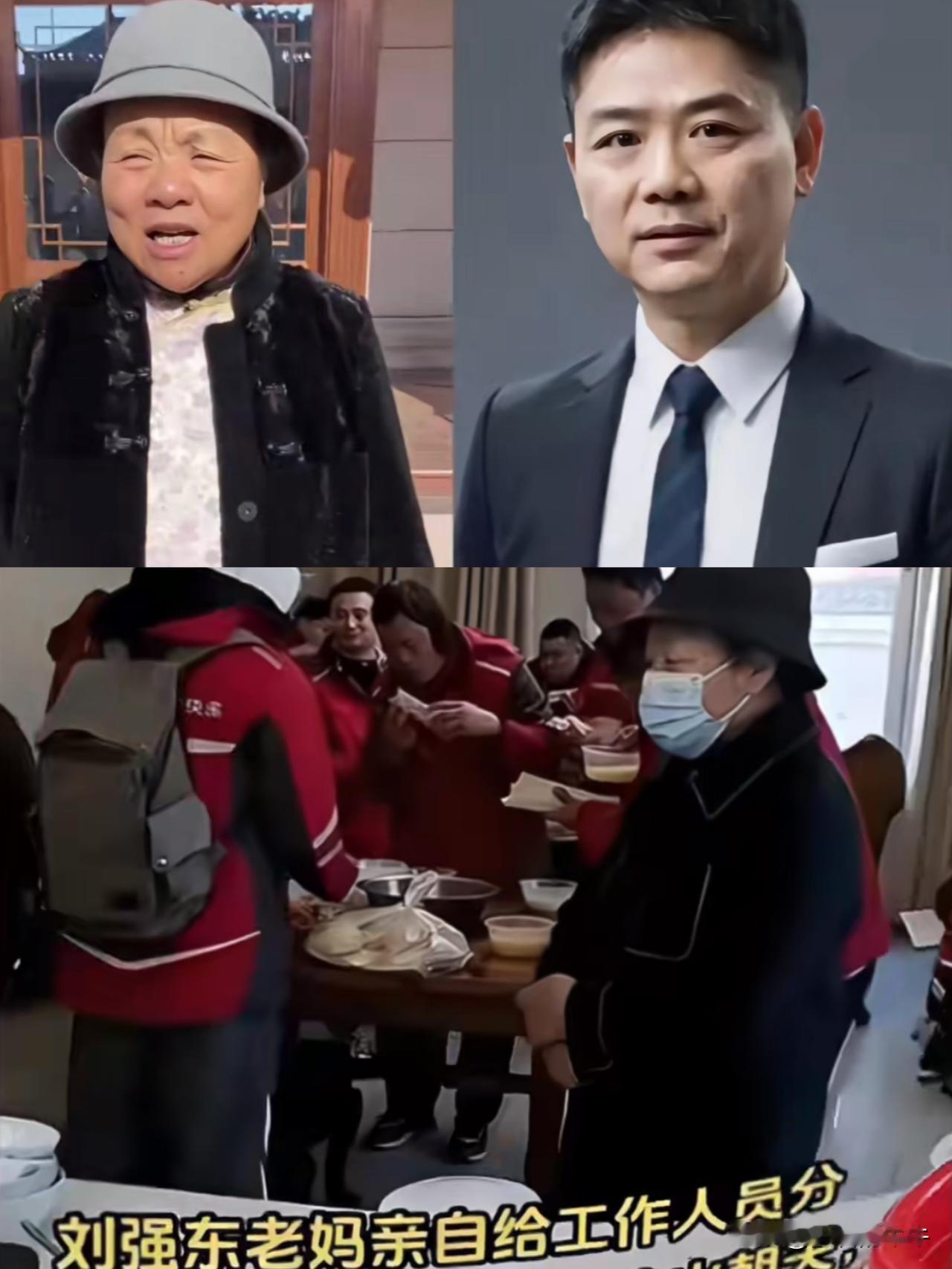刘强东妈妈真是个狠人啊, 明明儿子都坐拥千亿, 她还跑到食堂帮佣干杂活。 在京东食堂,她穿着朴素,和食堂工作人员一起择菜、擀皮,包好的饺子端给用餐的员工,没人把她当高高在上的老板娘,大家都亲切喊她“刘阿姨”。 有人纳闷,按理说她早该享清福了,犯不着在食堂里忙前忙后。可刘阿姨一句话说出了心里话:“我喜欢忙起来的感觉,喜欢被人需要,喜欢给大家服务,这样心里才舒坦。” 经历过苦日子的她,没被千亿身家冲昏头脑,依然保持着最本真的生活态度。把平凡的劳作当成一种享受。 有人说:刘阿姨才是真正的“精神富婆”。精神富足从不是腰缠万贯,而是不管身处何种境遇,都能保持热爱生活的心态,在付出中找到存在感,在忙碌中收获幸福感。 其实大家不明白,老了能在儿子公司干点杂活,员工见了都毕恭毕敬点头问好,那种被尊重、脸上有光的感觉,才是人生真正的高光时刻啊! 你说是不?