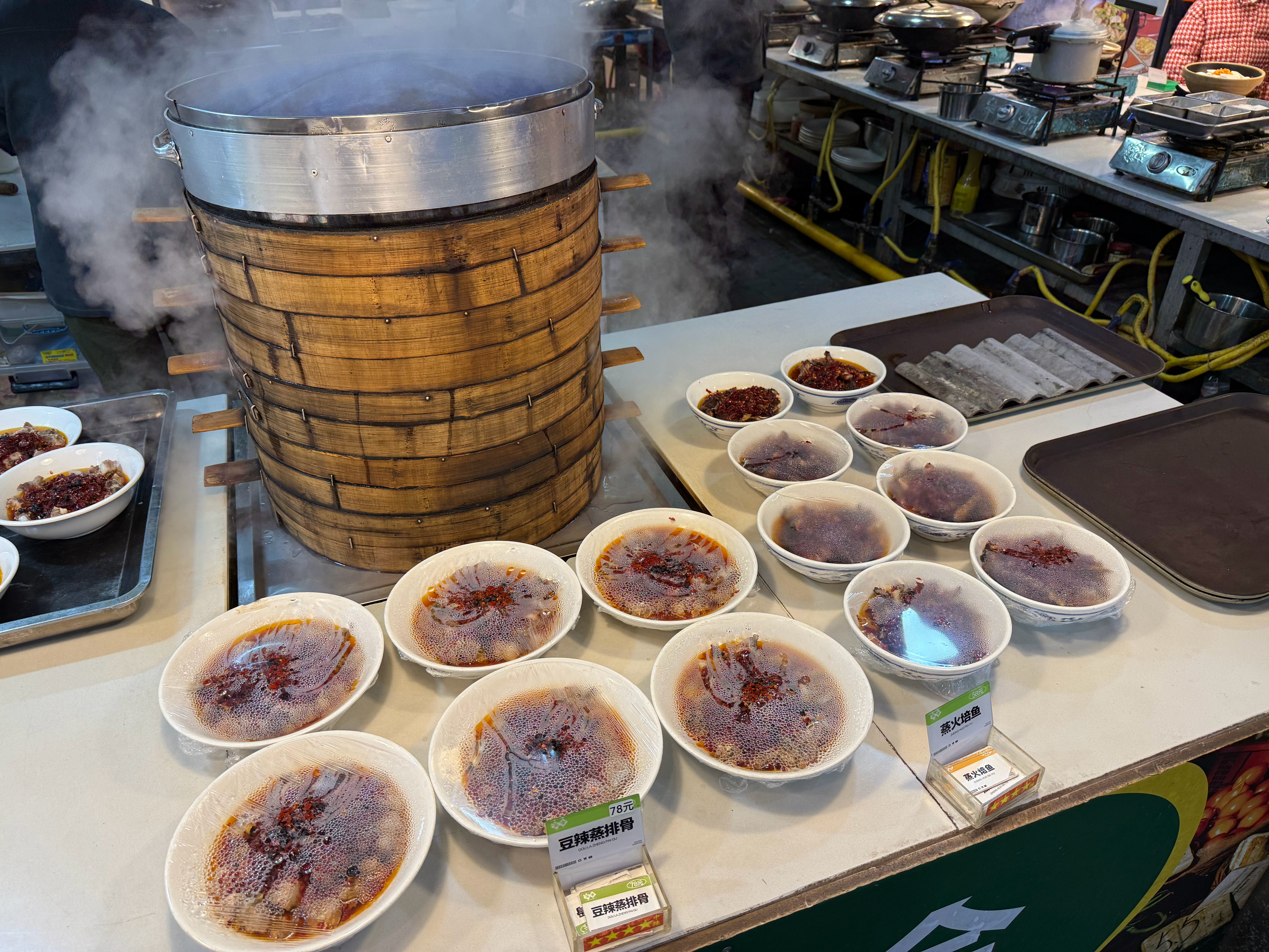 吃个特色菜,黄牛肥肠,老板说是延边特色菜。都是各种牛下货,有大肠、小肠、牛肝,牛
