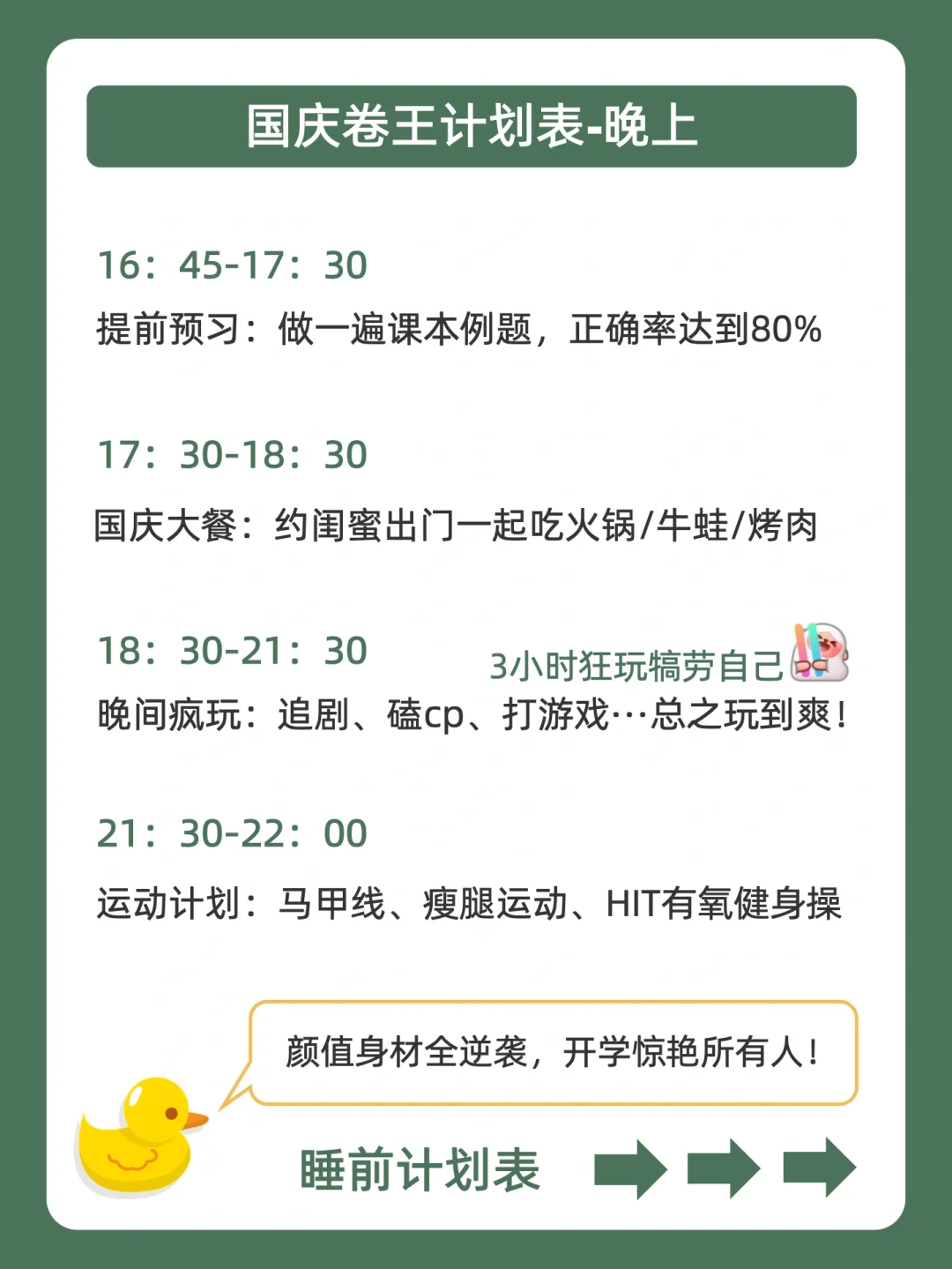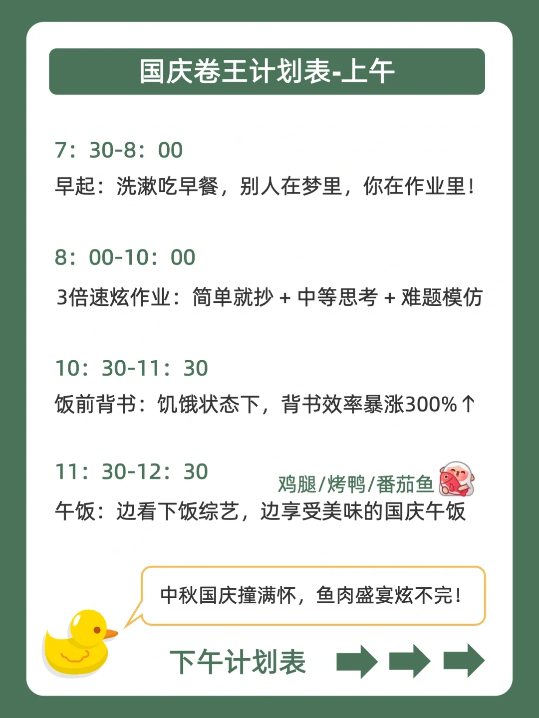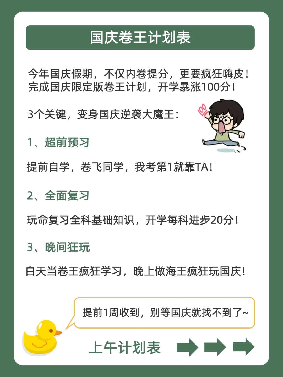 🔥国庆卷王计划表㊙你学8天=别人30天太爽了‼