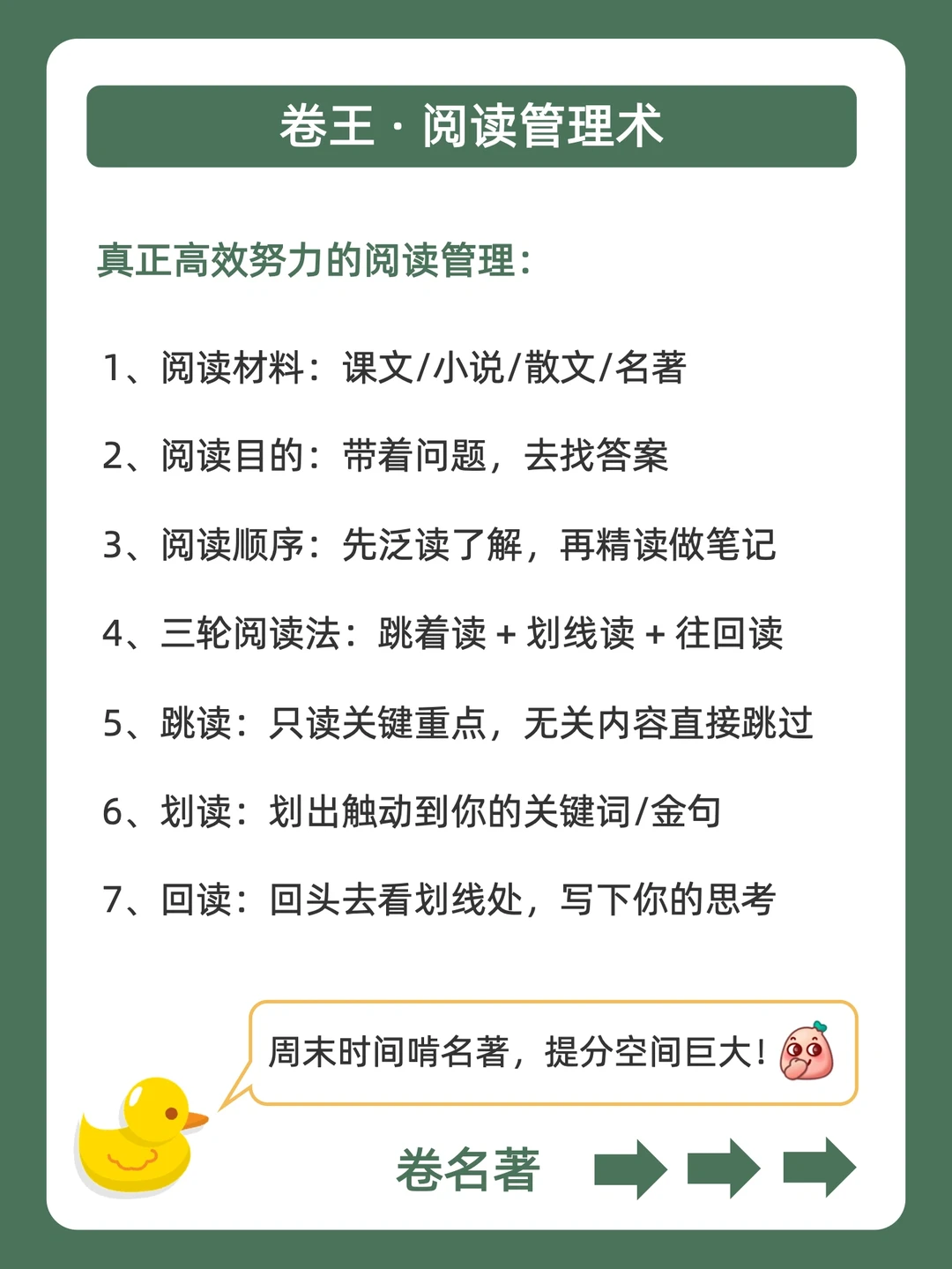 . [赞R]躺平摆烂不用怕,鸭鸭带你做学霸❗ . [向右R]有同学说自己真的很努力,但成绩就是不如人意![哭惹R] . [飞吻R]鸭鸭很心痛,因为你可能在假努力 = 白费力气![石化R] . 今天就来分享,杀死假努力的内卷方法,搭配卷王神器:名校课堂旗下的“读书侠”《名著导读》,从此杀死假努力,学会真内卷![赞R] . ️🐣我是鸭鸭,持续更新优质学习方法,陪宝子们快乐逆袭,驰骋学海!🌊