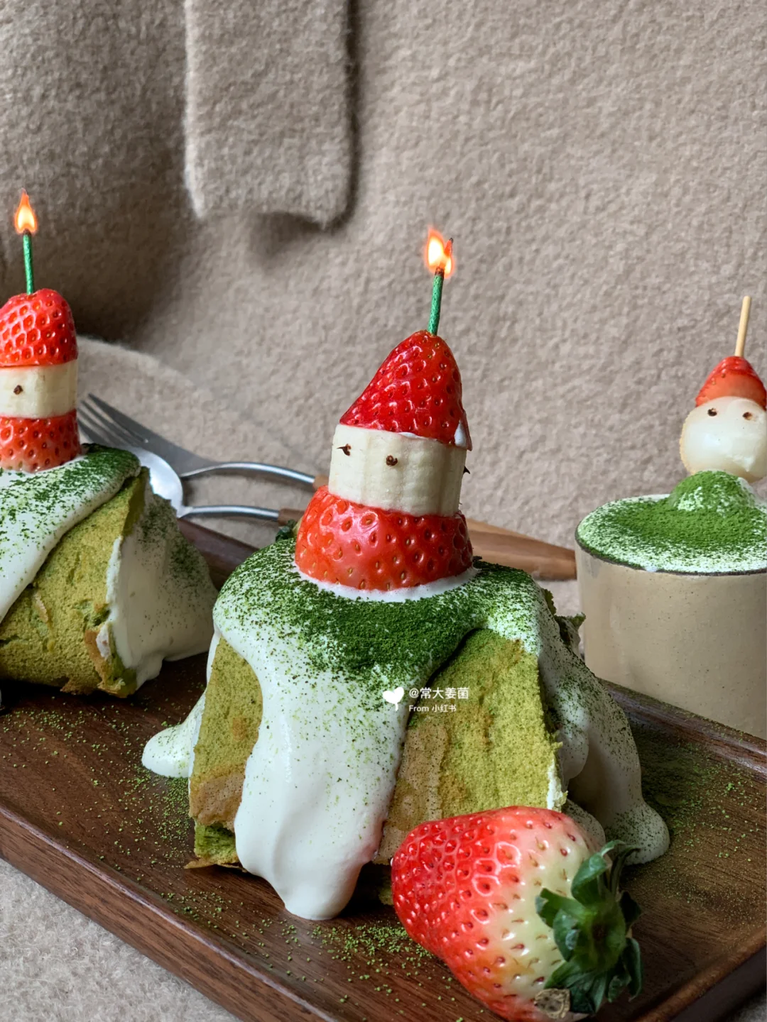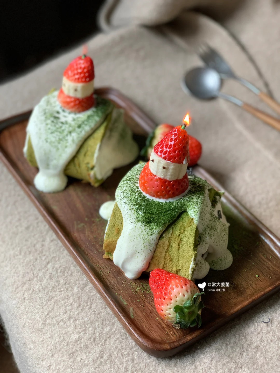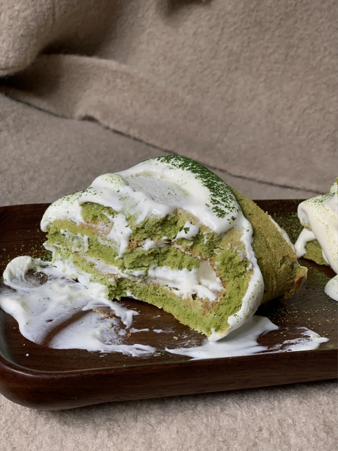 海绵蛋糕:低筋面粉55g,抹茶粉8g,植物油40g,牛奶65g,糖52g,鸡蛋4个(蛋白蛋黄分离)
