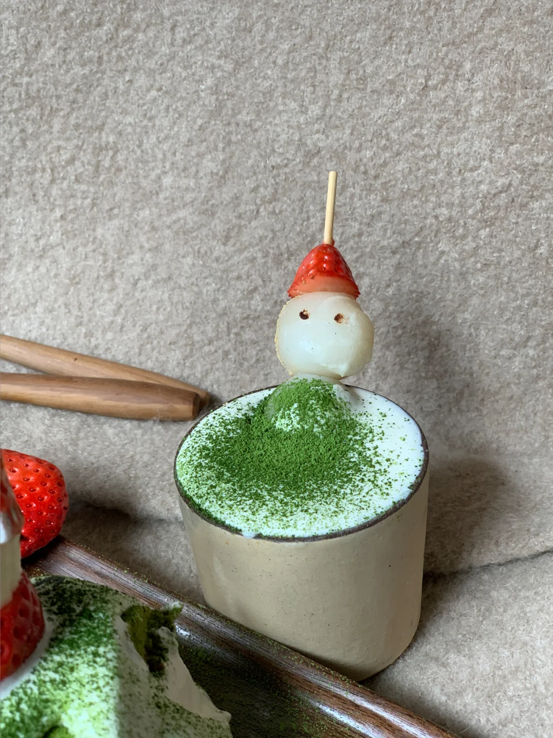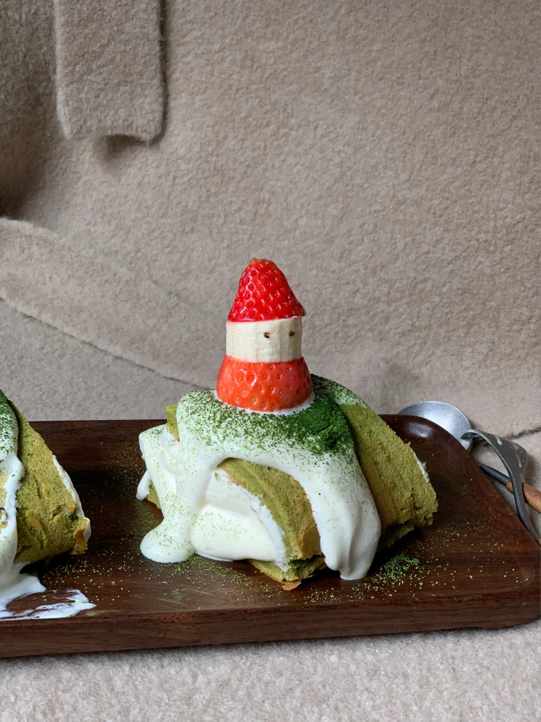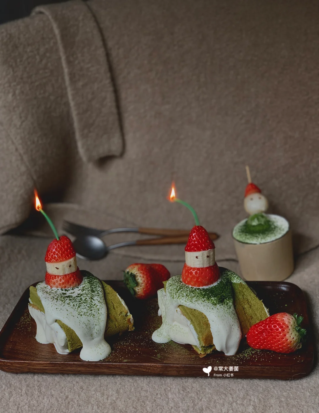 海绵蛋糕:低筋面粉55g,抹茶粉8g,植物油40g,牛奶65g,糖52g,鸡蛋4个(蛋白蛋黄分离)