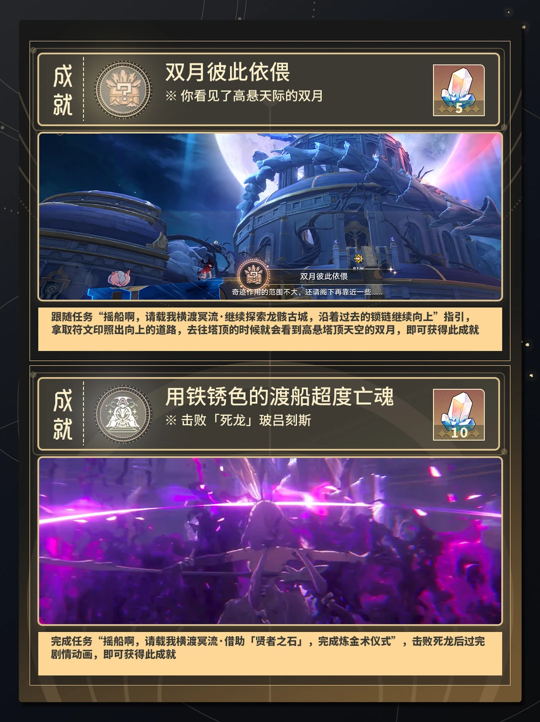 完成任务“摇船啊,请载我横渡冥流·借助「贤者之石」,完成炼金术仪式”,击败死龙后过完剧情动画,即可获得此成就