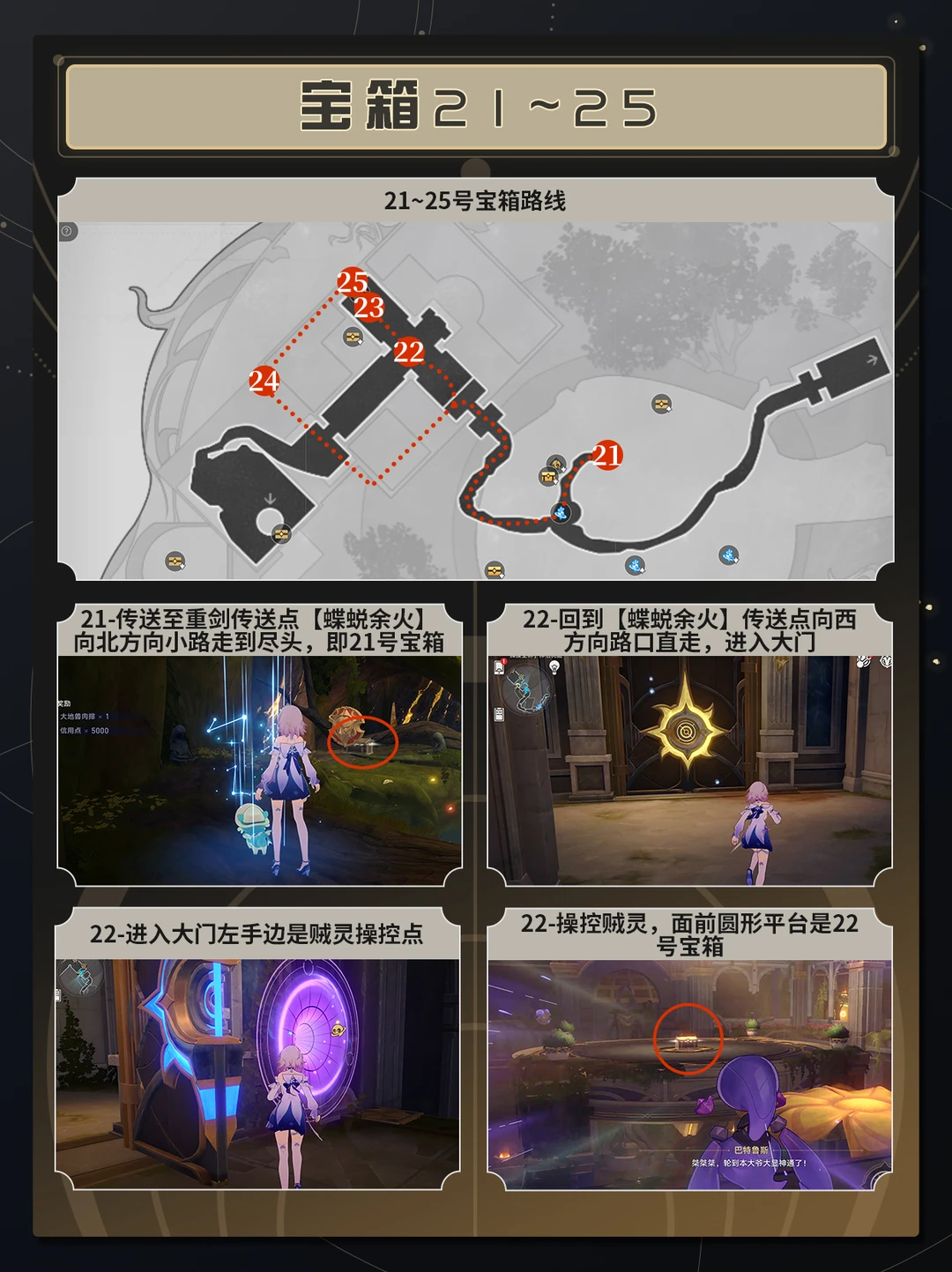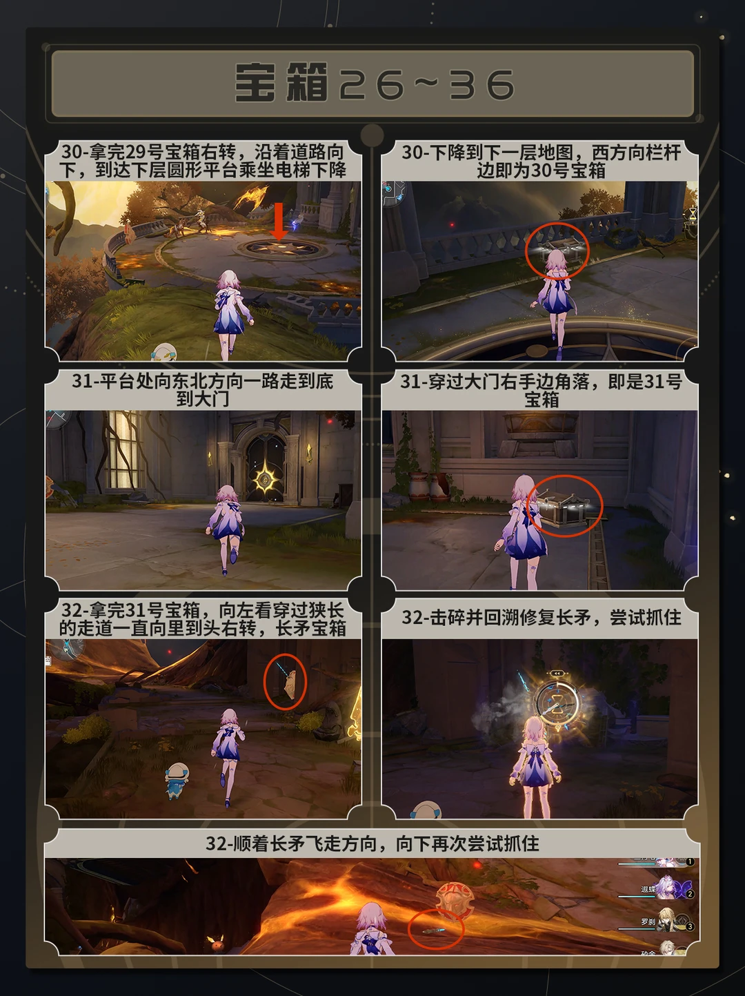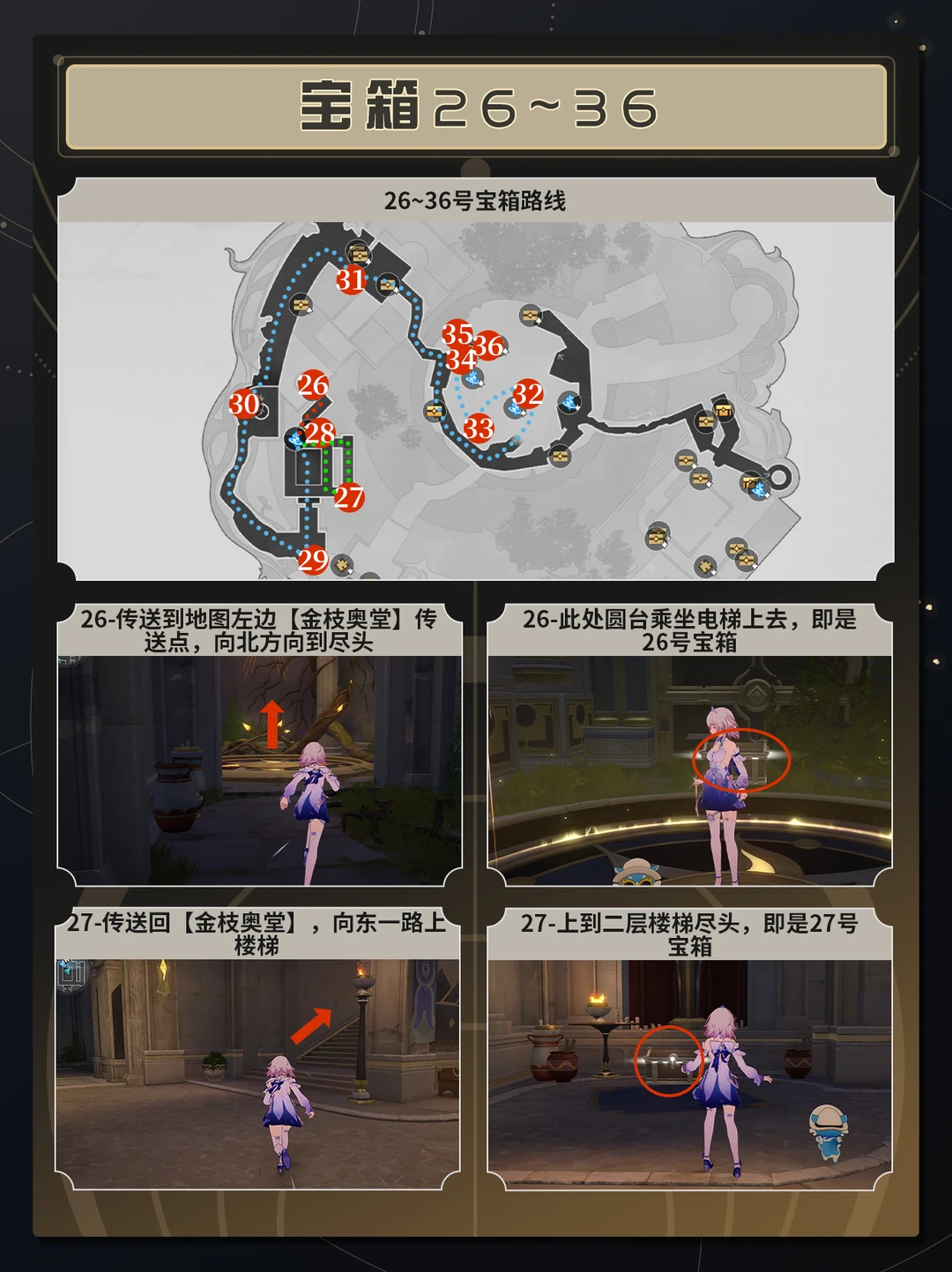 【V3.6】辉痕圣林神悟树庭全宝箱获取 uid:130302308 TIPS:为了各位开拓者能够更清晰准确地找到宝箱,后文会把路线以及宝箱具体位置分页标出,且会附上需要解谜宝箱的解谜步骤。