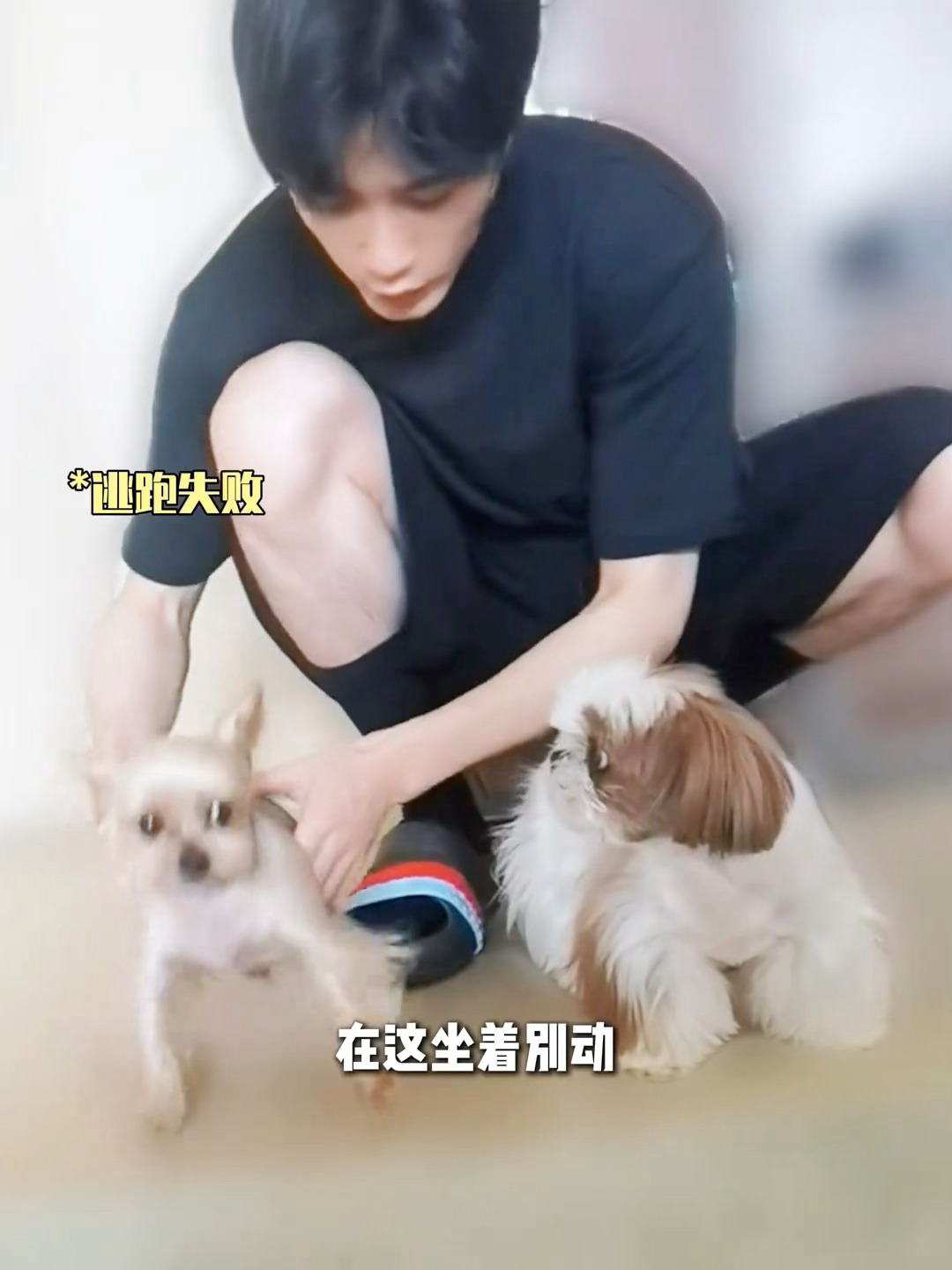 在这坐着别动!坐下!在这跪着别动!跪下!嗯嗯,还往下压屁股………