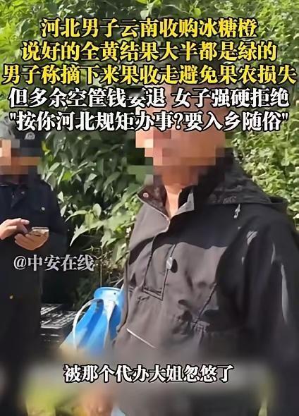 女子凭一己之力把果农干翻!云南,男子收购冰糖橙,和女子说好要全黄的,可第二天到果园发现大半都是绿的,男子避免果农损失,称会收走摘下来的,其他不要了,但要女子把多余的空箱钱退了,女子不愿意,说他们那里果有点黄就是熟的了,男子来到他们地方就要按照他们的规矩来,要求男子懂得入乡随俗。 谁懂收购商跑产地收果的难?男子做冰糖橙收购五年,常年开着货车穿梭在云南、湖南的冰糖橙产地,为了收优质果,天不亮就往果园赶,蹲在果树下一个个挑,捏果肉测成熟度、掰果皮看糖分,生怕收了次果砸了自己多年攒下的口碑。这次跟女子订果前,特意当着她的面摘了全黄的果子尝,确认甜度够、果肉饱满才定的规矩,说好只收全黄果,提前订了200个空箱,每个成本2块,想着收完直接装箱运走,省得来回折腾。可到了果园一看,摘下来的果子堆在地上,大半都是绿黄相间的,蹲下去捏了个,果肉发紧,掰开一点尝了口,又酸又涩,眉头瞬间皱成一团——这种半熟果,批发给水果店、电商,人家肯定退货,就算低价处理,也得亏人工、运费,根本不划算。 他没当场发火,知道果农种果不容易,风吹日晒浇水施肥,果子挂在树上怕旱怕涝,摘下来没人要,大概率会烂在地里,白忙活一场。所以才松口说收走已摘的,没追究她违约的责任,只想着要回多余空箱的钱,毕竟空箱没用到,留着下次还能凑活用,400块钱不多,却是实打实的成本。可女子压根不领这份情,叉着腰站在果子堆旁,语气硬邦邦的,半点愧疚没有,反倒倒打一耙说他要求太高。所谓“有点黄就是熟”,根本就是自欺欺人,懂行的都知道,冰糖橙成熟有明确标准,果皮全黄、果蒂新鲜、糖分达标才算熟,半绿果酸涩难咽,别说卖钱,自己吃都没人愿意要,她嘴里的“本地规矩”,不过是急着出手半熟果、怕烂在树上的遮羞布。 周围几个附近的果农听见动静围过来,有实在人私下拉着男子小声说,今年雨水多,冰糖橙熟得比往年晚,女子怕果子挂在树上遭病虫害,又怕后续没人收购,就急着提前摘了,想着蒙外地收购商不懂,没成想碰到他这种懂行的,只能拿“入乡随俗”强撑。这话戳中了关键——入乡随俗,随的是当地的风土人情、合理习俗,不是纵容不讲诚信、违背行规的投机取巧。男子跑过那么多产地,从来尊重当地果农的习惯,可尊重是相互的,他体谅女子种果不易留了余地,女子却把这份体谅当软弱,拿着歪理硬刚,连本该退的空箱钱都不愿让,半点做生意的诚信都没有。 后来男子看着地上已摘的几十斤果子,叹了口气还是让工人装了车,空箱钱没要回来,临走时跟女子说“做生意靠的是诚信,你这样蒙人,下次没人敢来收你的果了”,女子却扭头回了屋,压根没往心里去。可她没想想,果农靠果子谋生,口碑比啥都重要,短期蒙混能赚点小钱,长期下来,收购商们传开了,没人敢来这儿收果,她的果子烂在地里,损失只会更大;更甚者,还会连累周围正经种果的农户,人家辛辛苦苦等果子全熟了再卖,却因为她的投机取巧,让收购商对整个产地的果子存了戒心,最后一起受影响。 男子的厚道,不是软弱,是见过太多果农的不易,愿意多一份包容;可女子的蛮横,不是坚持本地规矩,是丢了诚信底线,把小聪明用错了地方。做生意从来没有“单方面的规矩”,只有相互体谅、守住诚信,才能长久——收购商要优质果保口碑,果农要守标准树信誉,你给我合格的产品,我给你合理的价钱,这才是买卖该有的样子。拿“入乡随俗”当借口蒙骗他人,看似占了小便宜,实则砸了自己的生计,终究得不偿失。 各位读者你们怎么看?欢迎在评论区讨论。