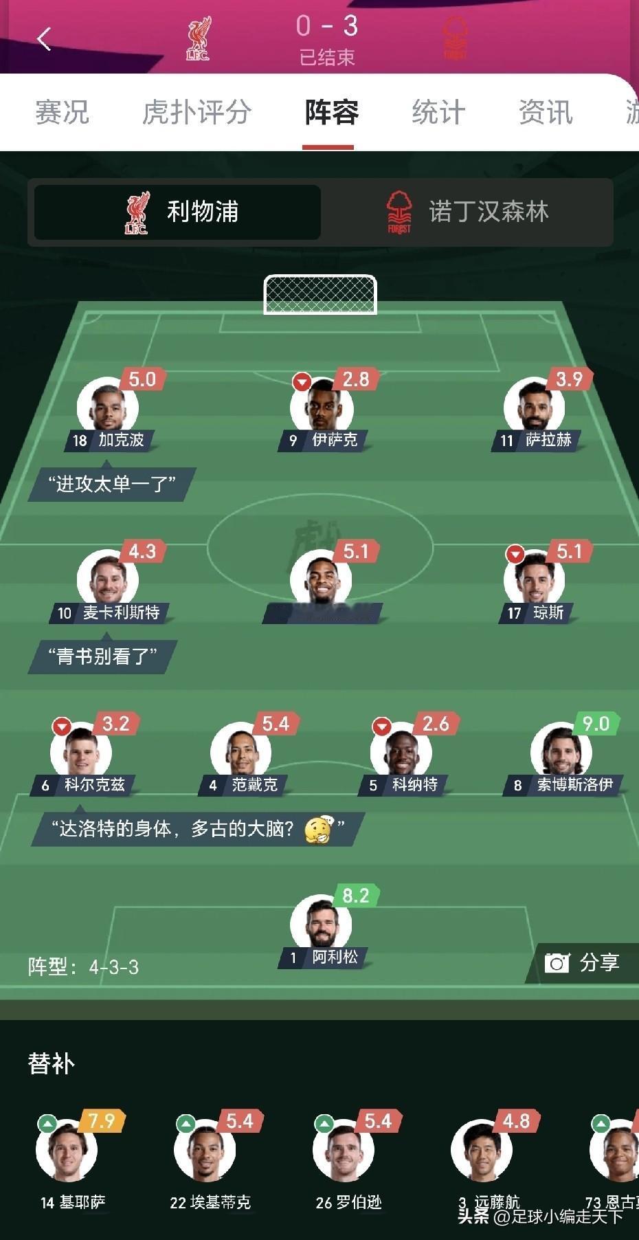 利物浦从英超大结局到保级只花了两个月!斯洛特再不下课没道理了,这球队目前没有其他解决问题的办法! 主场打压轴球队输0:3,可见利物浦出现了系统性问题,肖恩戴齐真是立竿见影。 这一场利物浦证明了无效控球率,森林的后防对利物浦的中路进攻针对性非常足,反观利物浦的后防就是纸糊一样,森林一打一个准! 比赛还未结束,安菲尔德球场就出现大批主场球迷退场,这样的情况我只在前几年曼联的身上见到。 感觉这支利物浦从上而下崩了,前中后场都有问题,要是不换教练这赛季能保住欧战资格就谢天谢地了。