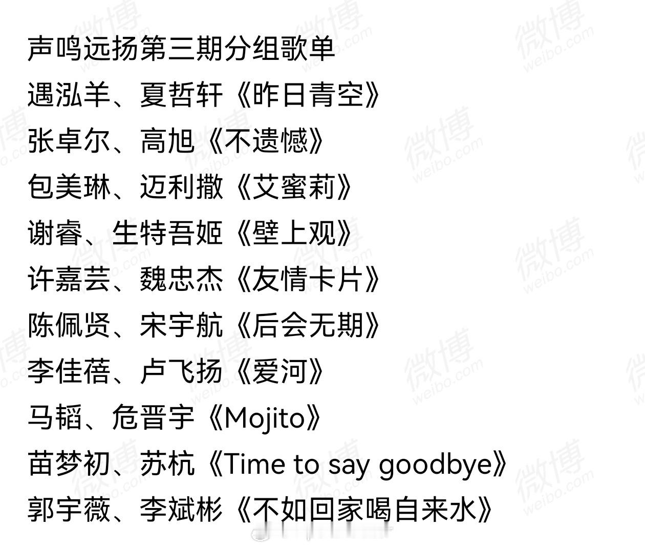 今晚声鸣远扬第三期直播歌单:尤长靖的昨日青空李荣浩的不遗憾周杰伦的Mojito邓紫棋的后会无期徐怀钰的友情卡片回春丹德艾蜜莉……感觉芒果台终于有钱买新歌咯~
