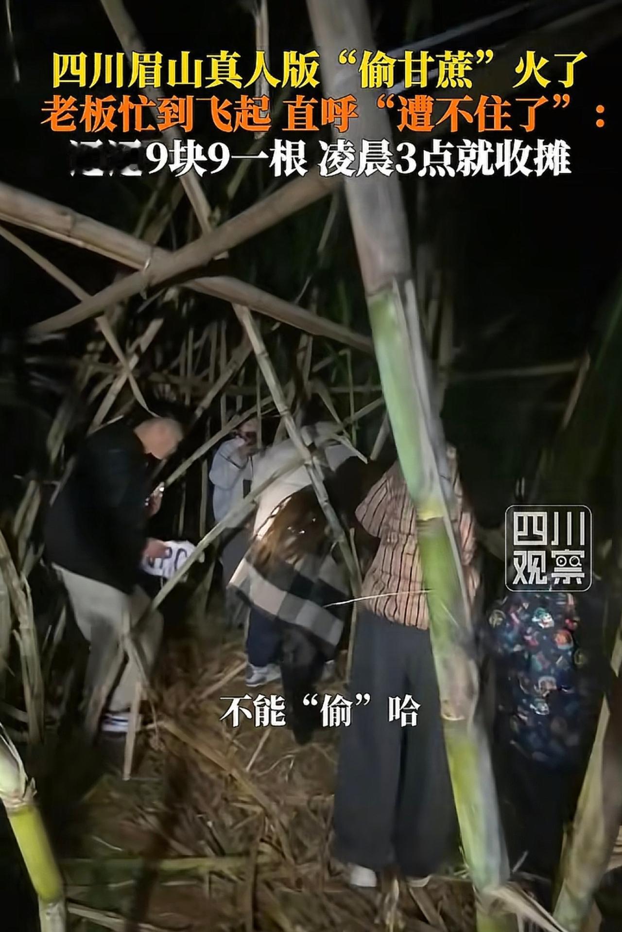 “偷甘蔗”现在爆火,很多人全国各地去四川,只为了体验一下小时候“偷甘蔗被抓”的乐趣。 近日,四川眉山一老板,听从媳妇建议,把45亩甘蔗地变成了大型“游戏”现场,大家晚上进甘蔗地,如果没有被抓到一根甘蔗9.9元,被抓到15.9元,而且为了增加体验感,老板增加了抓人的角色,外带小狗,全程真是又紧张、又刺激、又开心。 老板甘蔗卖出去了,大家玩的开开心心,真是一举多赢,有时候换个思路换个方式,前途就会一片美好,真是一个聪明的媳妇,一个听话的男人。偷甘蔗游戏