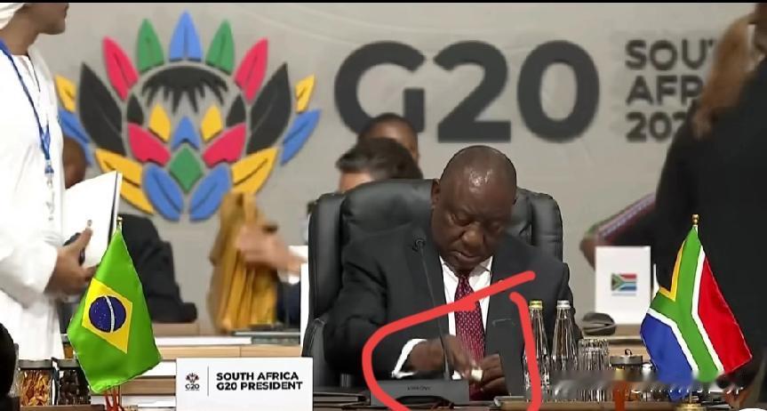 南非约翰内斯堡G20峰会开幕前,会场堪称“社交修罗场”——各国领导人忙着握手寒暄、互道友好,一派热闹景象。唯独东道主南非总统拉马福萨,独坐座位上开启“沉浸式擦平板”模式,专注擦拭足足70秒,跟周围的热络氛围形成鲜明反差,活像个“误入社交局的低头族”。 要知道他可是本次峰会的轮值主席,得扛着推进债务纾困、能源转型的重任,平板里说不定存着密密麻麻的峰会议程和关键资料。这70秒的“清洁仪式”,既像是大场面来临前的小缓冲,又透着点“先把工具搞干净再干活”的认真劲儿。网友调侃,在各国忙着拉关系的时刻,拉马福萨用实际行动证明:“再重要的峰会,也得先让平板保持锃亮”,成了开幕前最接地气的小插曲。