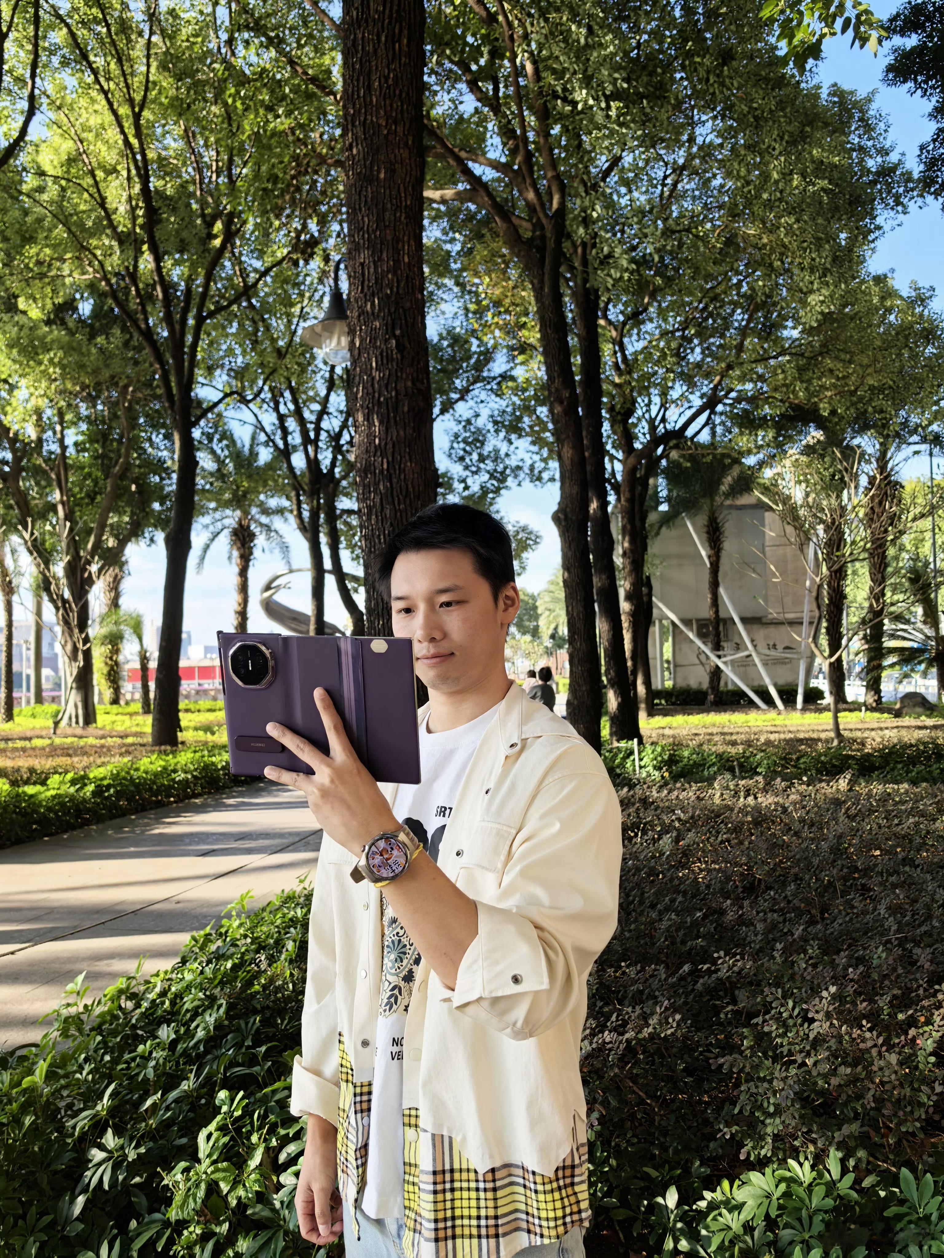 嚯~你们看,陈艾森用的是华为三折叠,戴的也是华为WATCH!