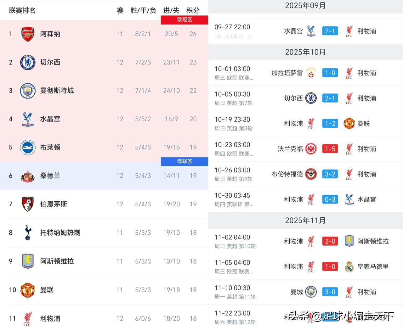 今年的利物浦有点像像去年的曼联啊!要是没有开局靠绝杀抢的那几分,红军说不定已经在降级区了。 能把安菲尔德的球迷打的提前退场,我倒要看看斯洛特上赛季的冠军护身符还有多长的有效期。 其实上赛季夺冠斯洛特也暴露他的一些问题,固执不轮换,进球开始控节奏苟,那时候渣叔底子还在能突然提速打回来呢。现在渣叔印记没了,自己玩不转,这两场能看到想改变,但是没效果呢,那可能真得下课了。 现在想想赛季初说的英超大结局,指的是斯圣下课,利物浦失去欧冠资格吗?