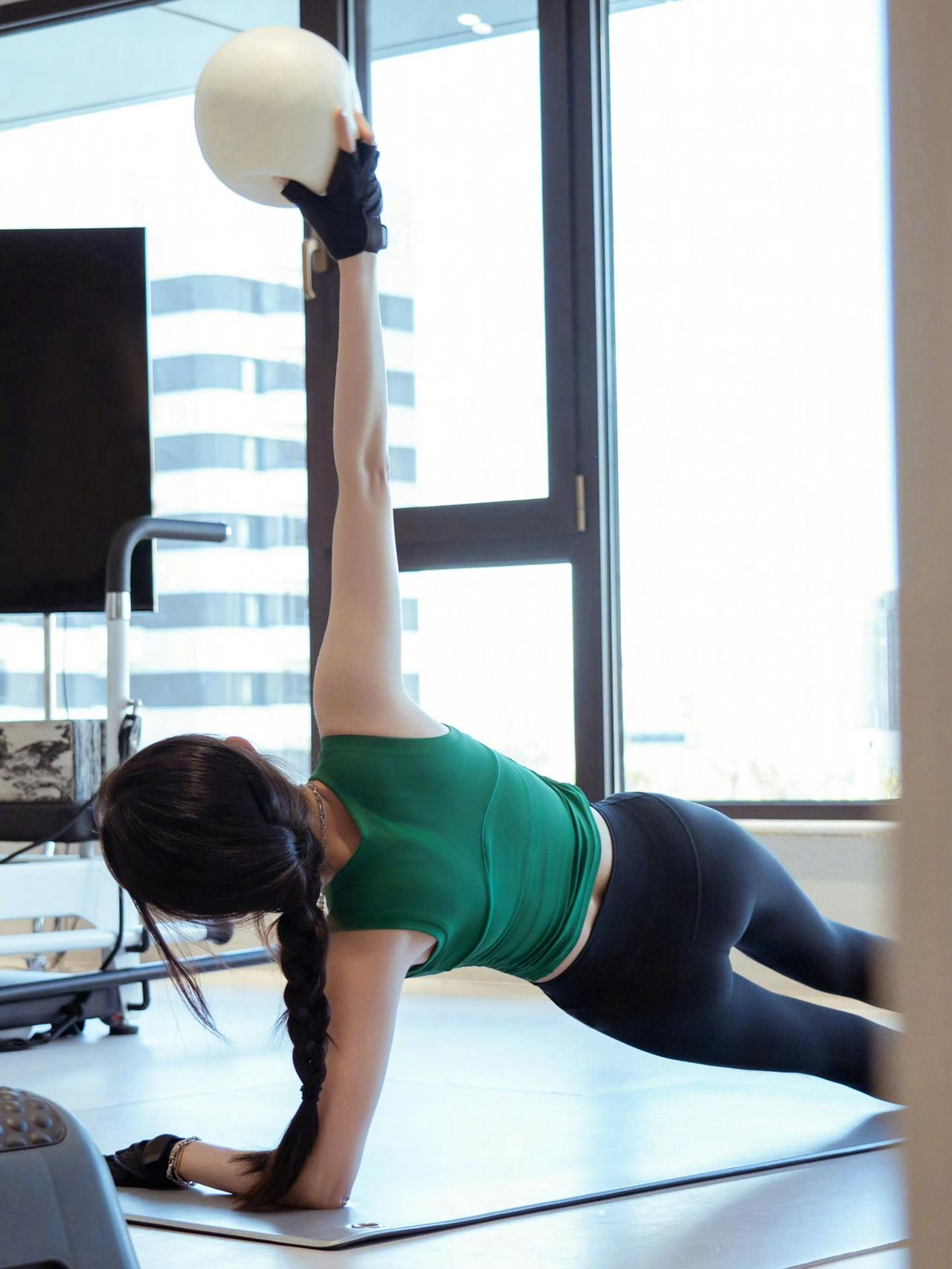 杨幂这组健身造型太戳“清爽利落”的点了!墨绿运动背心搭黑色鲨鱼裤,简约又显线条;配迪卡侬训练手套,实用还衬得活力满满,是“运动穿搭不单调”的模板~杨幂 幂式穿搭
