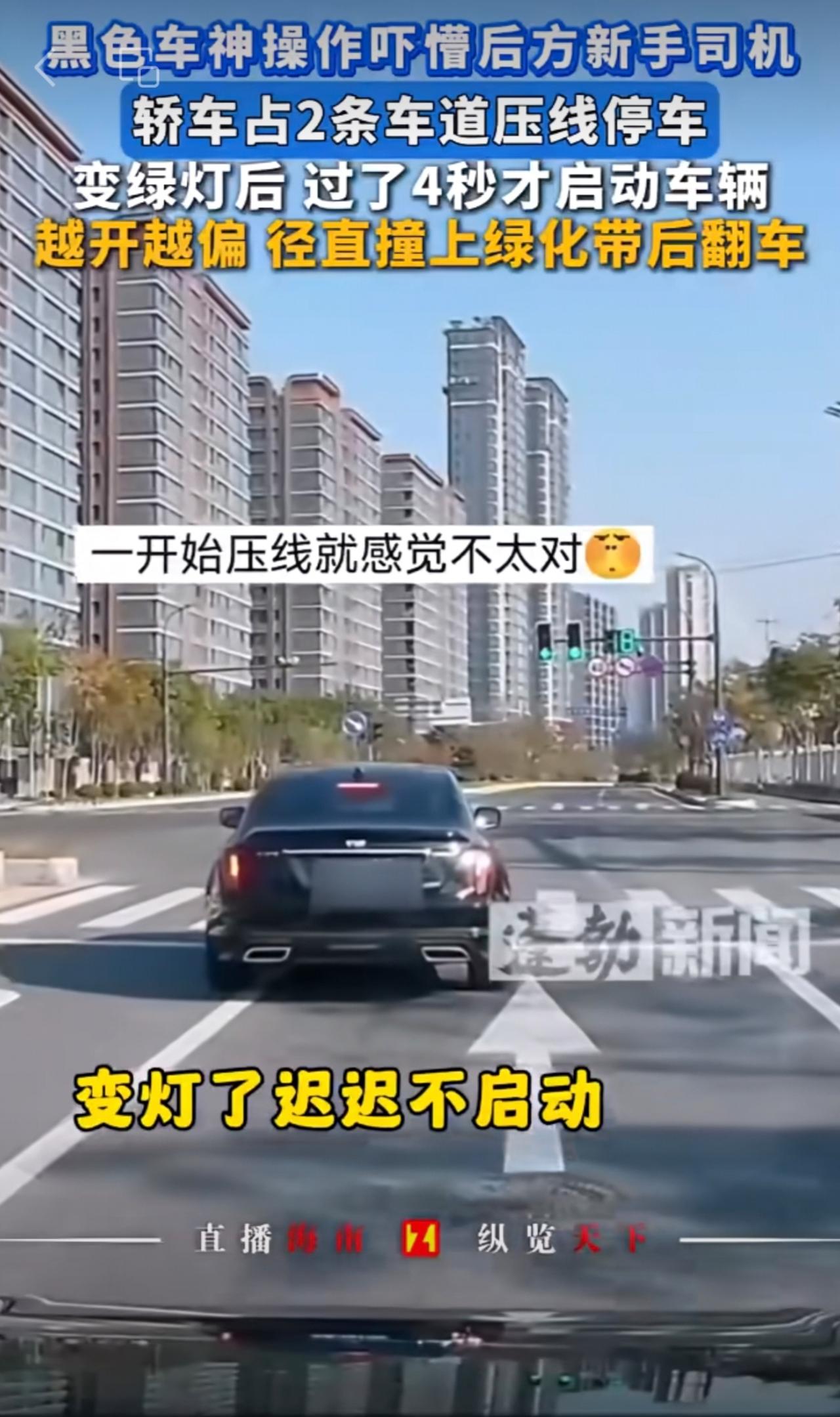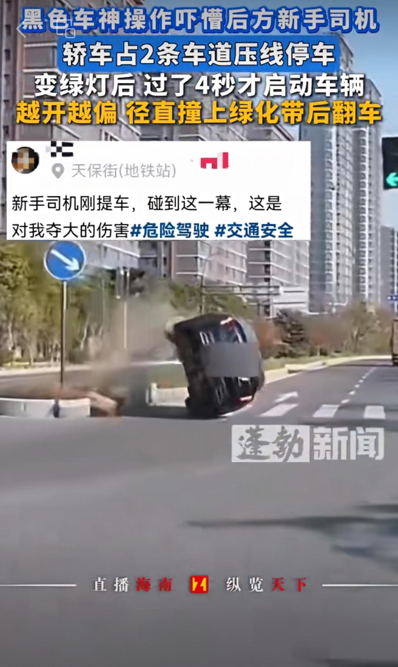 黑色车占2条车道压线停车,绿灯4秒后才启动,行驶中路线偏移,径直撞上绿化带翻车,这波操作吓懵后方新手司机。交通安全 司机 开车走神 (来源:蓬勃新闻 | 编辑:王晨旭 | 初审:郭启迪 | 复审:范思瑶 | 终审:刘鹏 | 校对:刘逸博 )