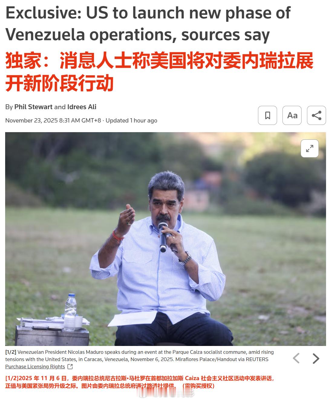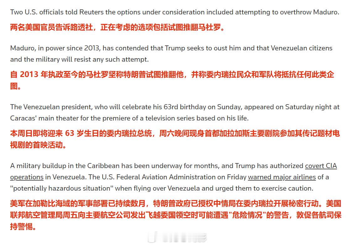 四名美国官员透露,美方近日将启动对委内瑞新一轮行动,新行动很可能首先采用隐蔽行动,而所有选项中包含推翻委内瑞拉现政府的可能性