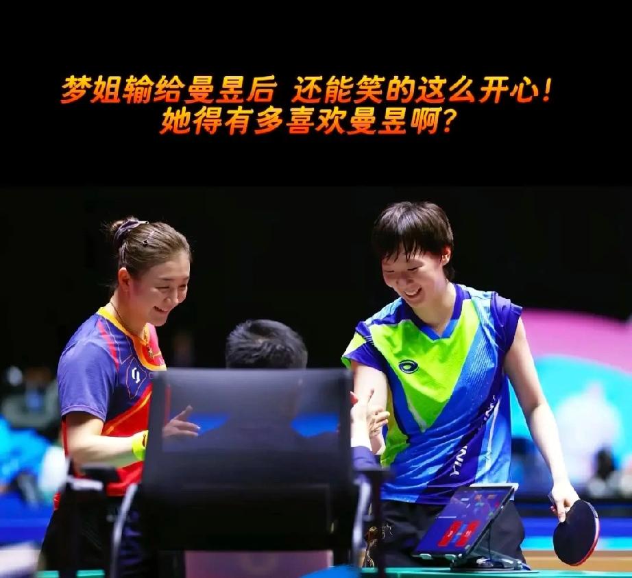 陈梦该有多喜欢曼昱,就从这张图片就说明了一切!二人打完比赛,有说有笑,还边走边聊天,在与教练握手的瞬间也是不放过,这姐俩真能唠! 二姐妹也是好久没有见面,但从聊天那个劲头来说,不只是相互寒暄问候,看得出大梦和鳗鱼有很多话要说,鳗鱼也是很想她的大梦姐姐! 自从巴黎奥运会结束,二人也是没有交手过,这次有缘与鳗鱼分在一个半区,没想到两个姐妹的缘分真深啊!在半决赛还遇到了,估计大梦和鳗鱼也没想到,二人在巴黎奥运会混团搭档女双真的是太强了,那场逆转的比赛至今我是记忆犹新,估计这两姐妹一辈子也是难以忘记吧! 陈梦和王曼昱是我最喜欢的两个优秀运动员,她们场上是对手,场下是朋友,打完比赛又有说有笑的,喜欢二姐妹的比赛氛围,这张图片我很喜欢,替你们保存一下,若干年过后,当大梦和鳗鱼看到这张图片后,会不会很是感动啊!我想应该老感动了哈
