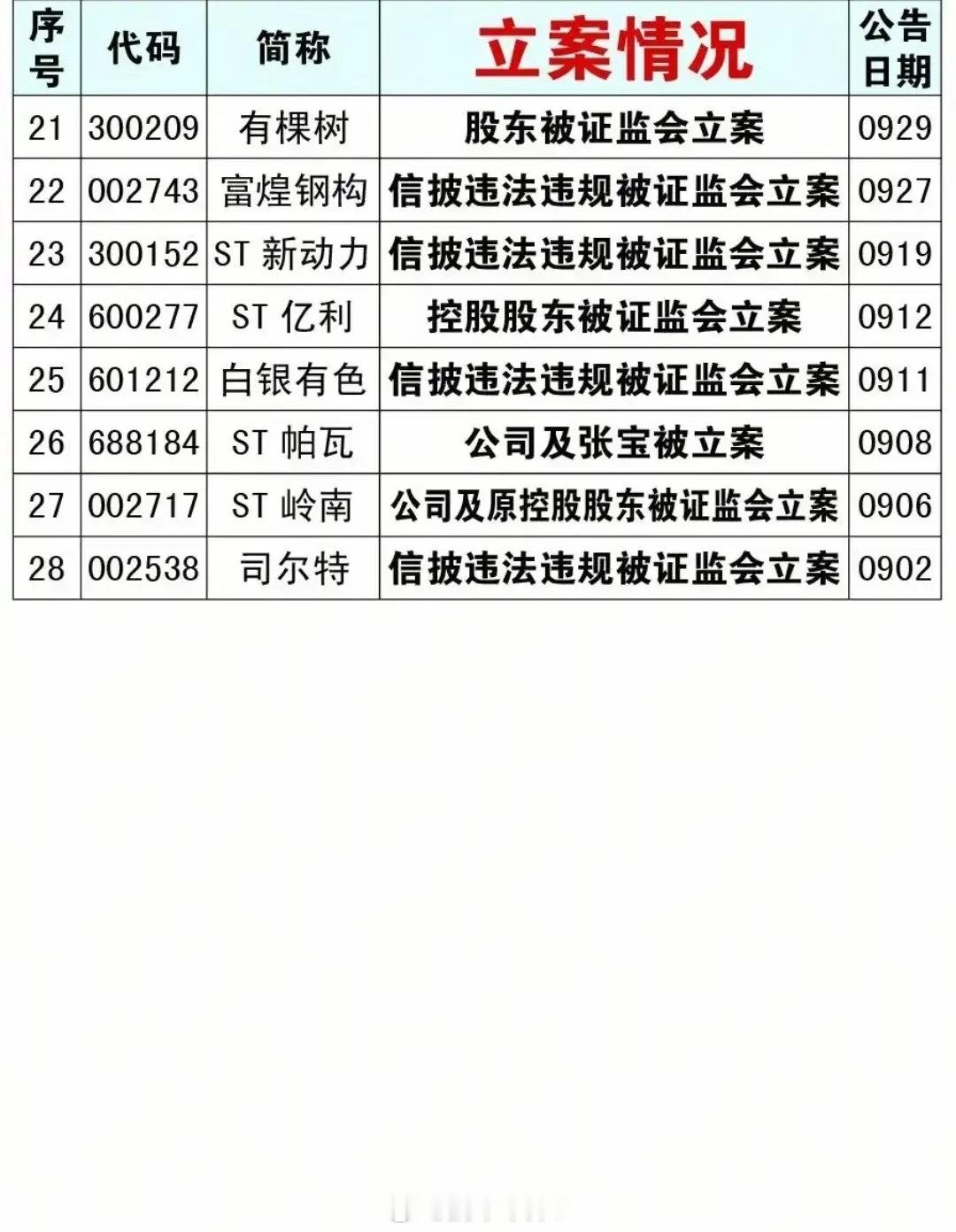 避雷,最新立案调查风险、国家队减持风险!(9月1日~11月23日立案调查公司名单