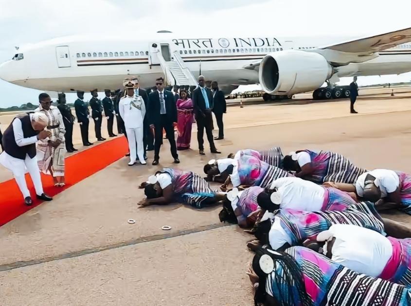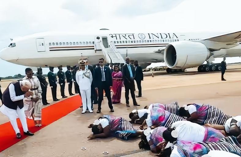 这是什么礼仪方式? 很少在公共外交场合,出现这样的欢迎仪式! 这是那个国家的特色仪式呢?
