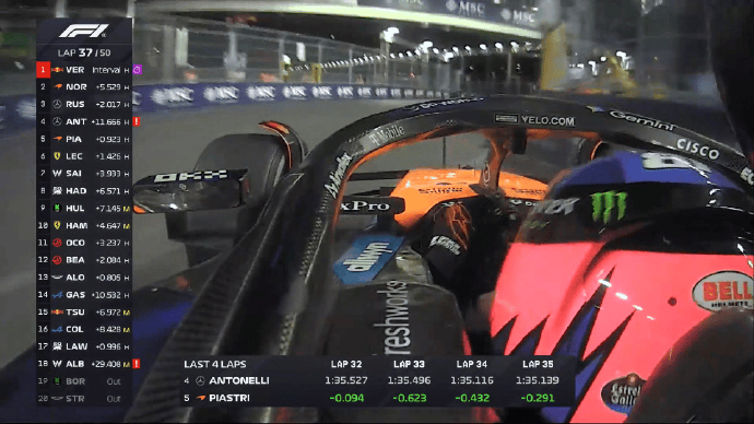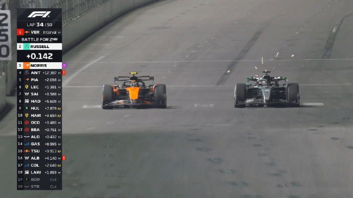 皮亚斯特里追击安东内利,不过后者仍有5秒罚时未执行;