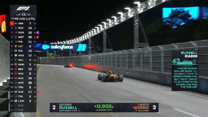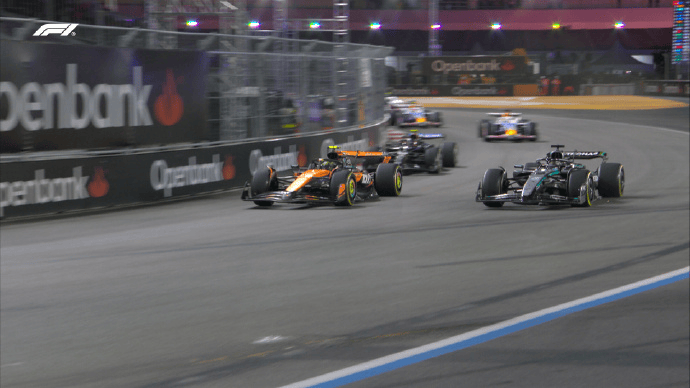 最后两圈,诺里斯似乎正在应对赛车问题,他的速度明显减慢;