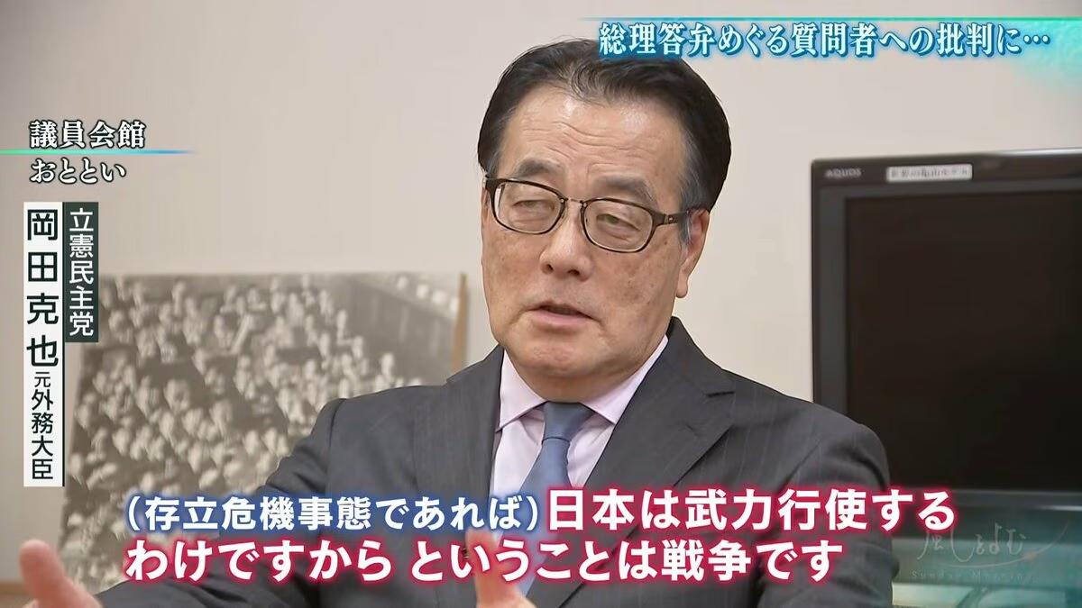 在高市早苗发表错误的台湾言论导致中日关系紧张之际,日本国内‘病急乱投医’,不去批评高市早苗犯错误,反而去批评当时提问高市的人!说他不应该问那样的问题?当事人:我也没想到她会那样回答! 在首相高市就台湾紧急情况作出错误的回应后,日中关系急剧恶化。日本立宪民主党前外相冈田在国会辩论中提出的问题饱受日本国内批评,有日本记者向冈田本人询问了他当时向高市早苗提问的意图。 高市首相的回应引发争议,日本却把批评的矛头指向反对派提问者。 与此同时,日本媒体发表社论称“不要拿安全问题搞政治”,也有“他不停地问问题是不对的”之类的批评。 日本前外相冈田今天回应了自己成为批评目标这件事是不对的,是高市早苗发表的错误言论导致今天的局面,不是他。 日本立宪民主党前外务大臣冈田克也表示:“我完全不明白我的提问有什么错。”“如果日本面临生存危机,日本就会动用武力,那就意味着战争。民众的生活将受到巨大影响。当然,自卫队的生命也会受到威胁。我不明白一个政治家怎么会说出这样的话。” 这场辩论于 11 月 7 日在预算委员会举行。冈田当时想到了高市的言论,即如果中国在 2024 年自民党总裁选举期间对台湾实施海上封锁,“这可能会成为自民党生存的危机”。 日本立宪民主党前外相冈田表示:“高市在首相选举期间的言论令人印象深刻。他说:‘即使在这种情况下(对台湾实施海上封锁),也很难断定存在生存危机,对吧?’” 冈田表示,他原本预期答案会基于政府以往的回应和相关法律。然而,这次引发问题的却是高市的错误言论。 当时高市早苗说:“例如,要使台湾完全置于中国的控制之下,会采取什么手段?如果这涉及到动用军舰和武力,那将对我们的生存构成威胁。” “生存威胁情境”一词由安倍政府于2015年提出,指的是基于集体自卫权允许有限使用武力的情境。 它仅限于“日本的生存受到威胁,且国民的生命权、自由权和追求幸福的权利明显面临被根本性剥夺的危险”的情境。 “我从未想过要进一步逼迫他”:冈田的意图与高市的反应存在差异。立宪民主党前外相冈田表示:“我认为这是一个非常危险的言论。如果我继续追问,双方的对话将会变得非常紧张,她也不会让步。” 日本的现在想的不是真正解决问题,是在逃避问题,真正解决问题的方法大家都知道,只不过日本首相现在不作为。结果日本媒体竟然去攻击当时的提问者,这时典型的病急乱投医,可对于问题的解决毫无益处,只能转移国内对高市的批评声音,混淆视听罢了。