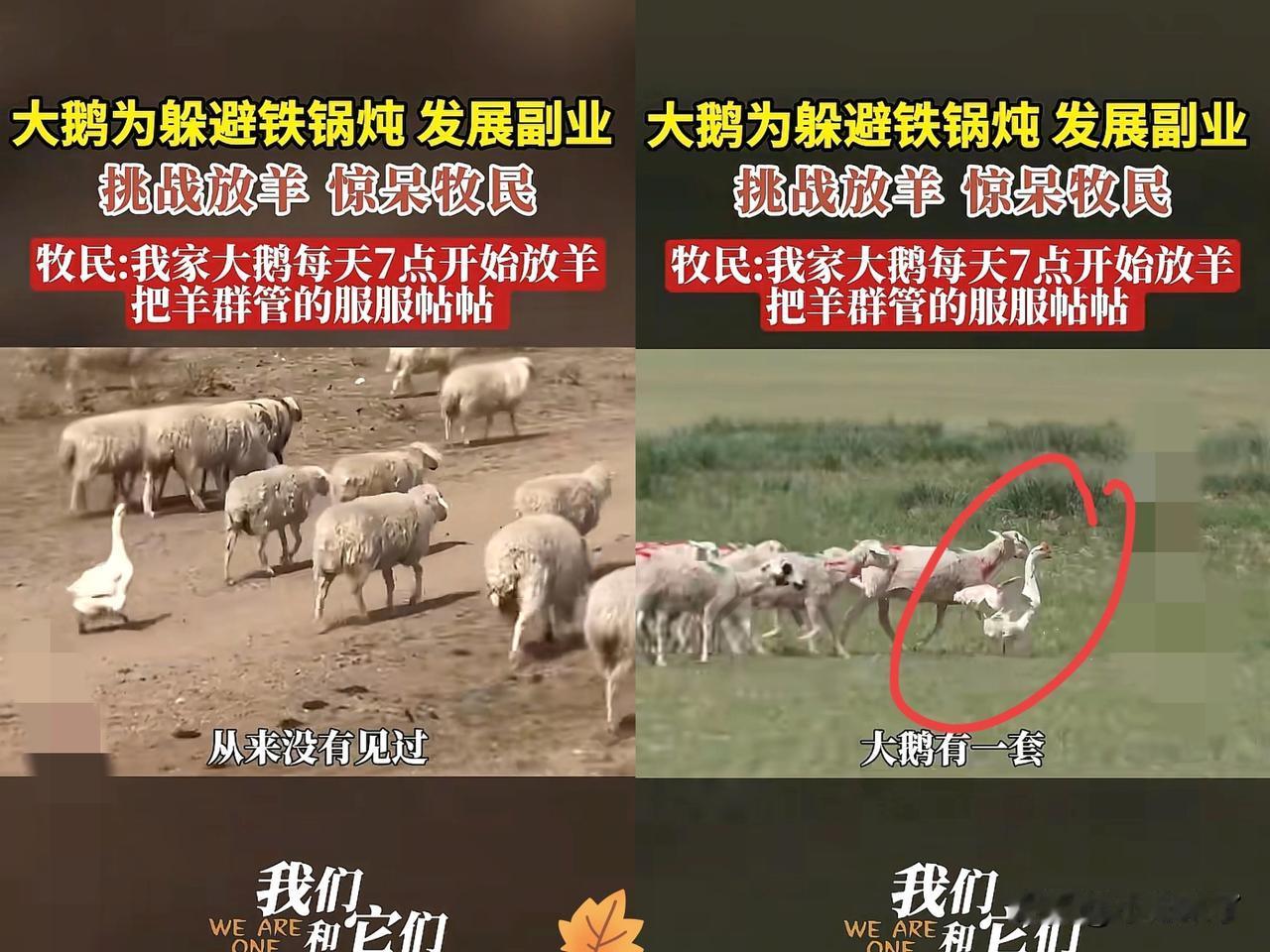 内蒙古一个牧民家里养了只大鹅准备冬天炖着吃,结果这鹅自己整出新活来了。每天早上七点准时上岗,自带羊群出门溜达,比设定好的闹钟还准时! 羊群敢私自分群?它嘎嘎两声就能把散羊喊回队伍;有羊偷懒耍滑不啃草?上去就啄屁股,专治各种不服,比专业牧羊犬还顶用! 牧民都笑称,自从这只鹅“上岗”,羊群连一根羊毛都没丢过! 现在倒好,炖锅彻底跟它说拜拜,反而成了草原上的“打工劳模”,网友直接笑喷:这哪是大鹅,分明是偷拿牧羊犬剧本的卷王本王! 其实这鹅才是顶级生存高手啊!知道自己要被端上餐桌,直接用实力证明“我很有用”,把“待宰食材”逆袭成“家庭功臣”! 有时候保命哪靠运气,靠的是主动把自己活成“不可替代”的狠活!