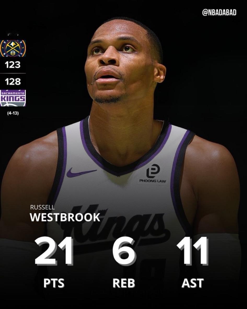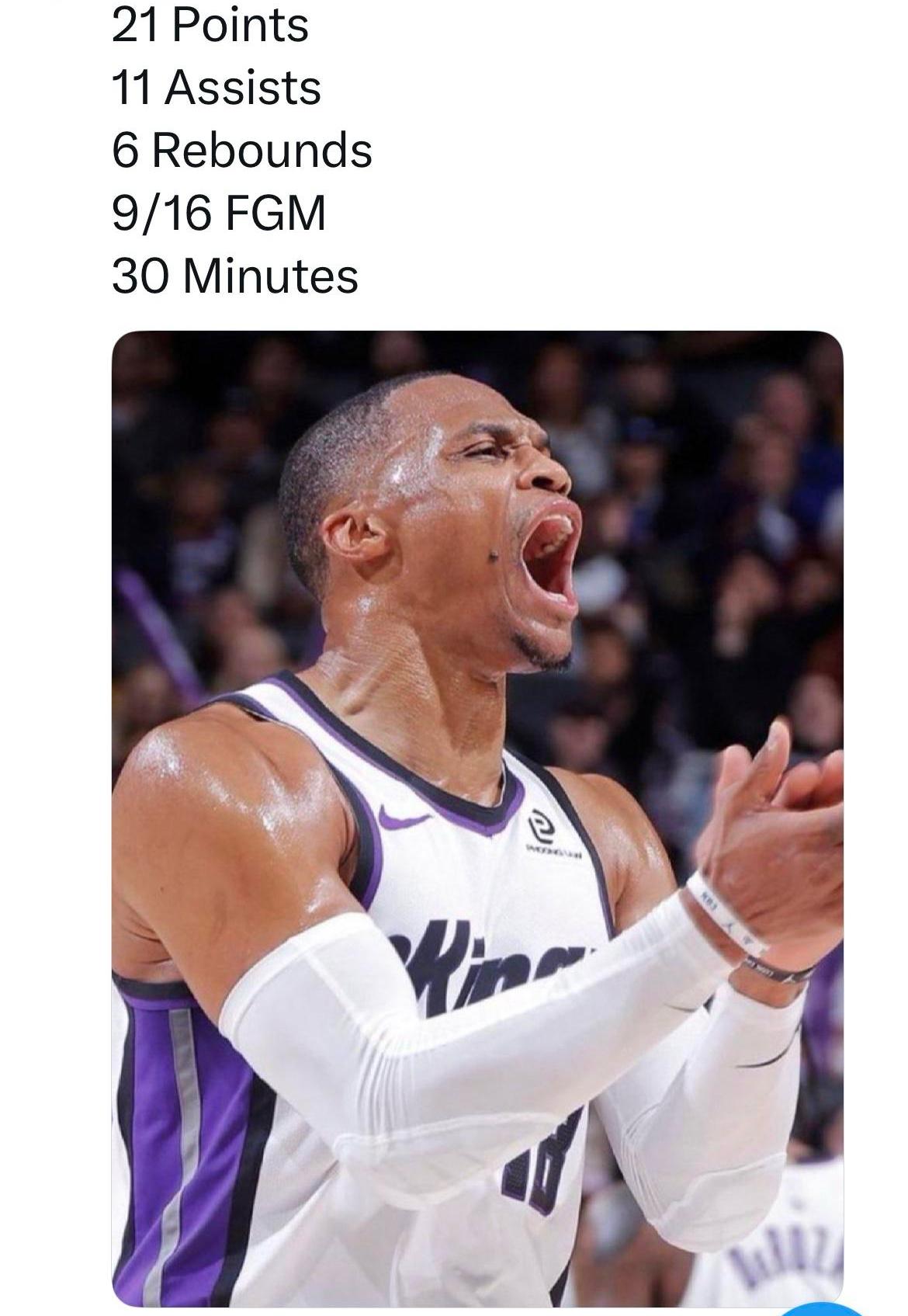 威少手刃老东家,单节15分带走比赛!就想说,威少老将底薪却干着千万的活,国王偷着乐吧。 约老师空砍44分13篮板7助攻。