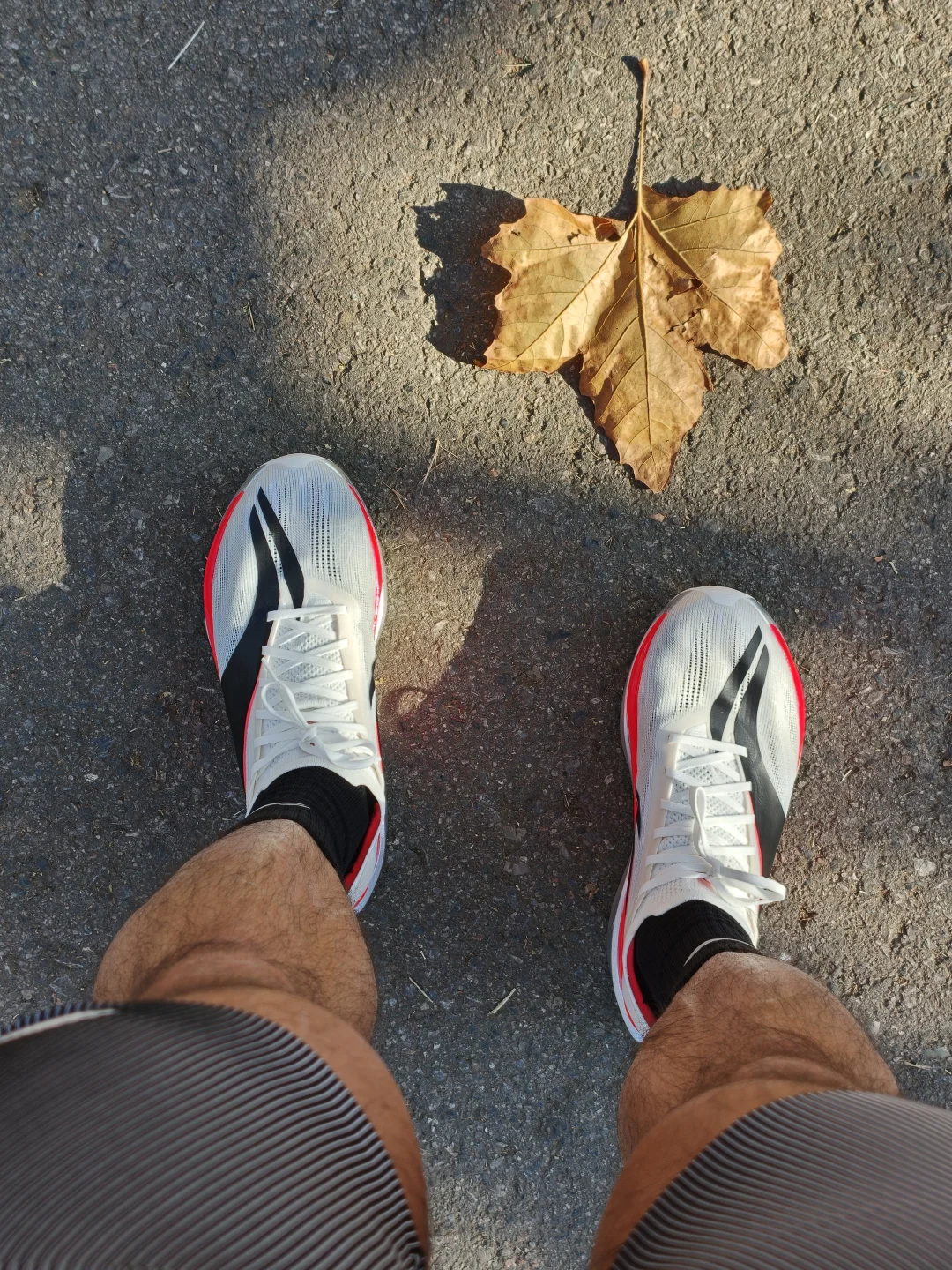 谈谈不足,跑到觉得起脚有点沉(可能是我最近累了状态不好,也有可能是46码的大鞋有点重哈哈哈)再硬说一个的话就是后半程体力不足驾驭不好它,当然这是我的问题不是鞋